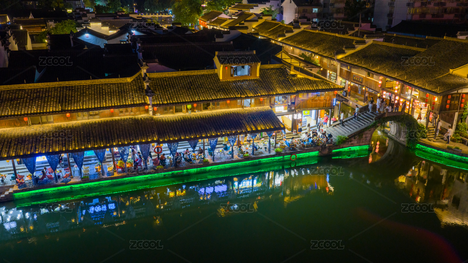 梦里水乡古韵新景浙江绍兴柯桥古镇夜色