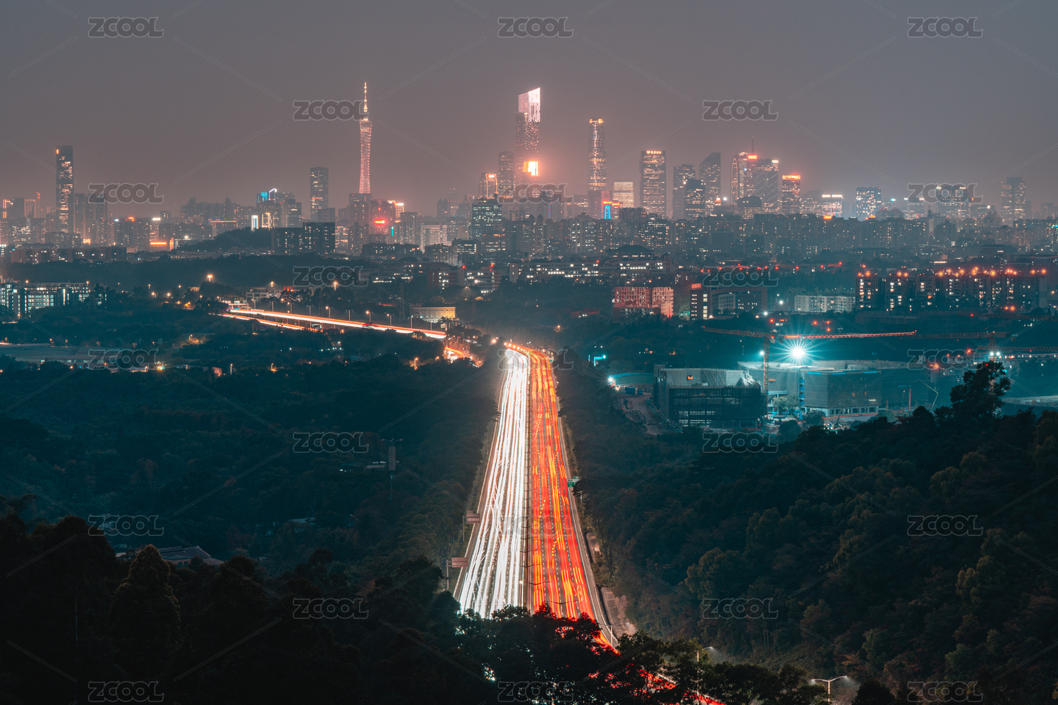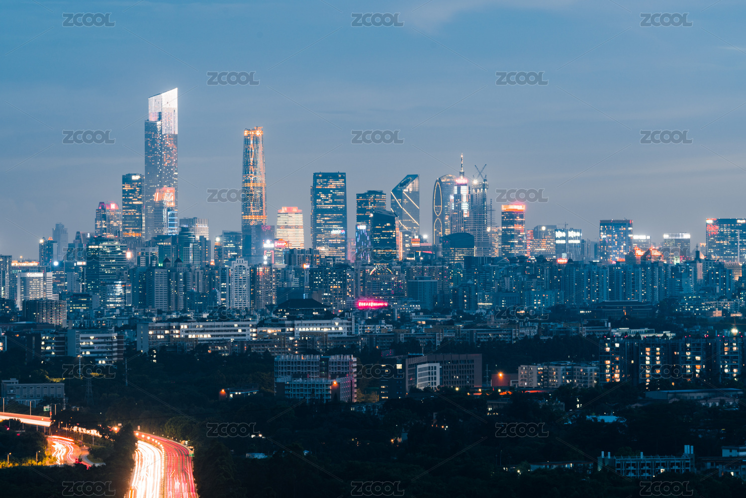 中国广东广州市火炉山华南快速观光点俯瞰珠江新城