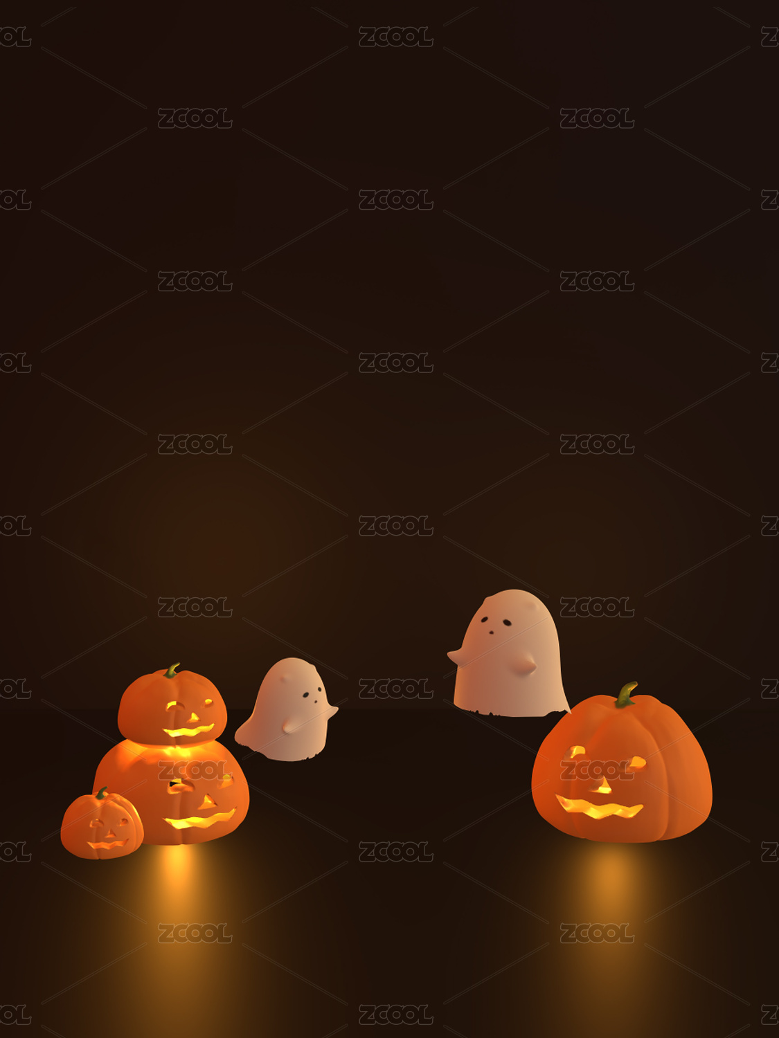 万圣节之夜恐怖月亮南瓜灯猫头鹰海报插画