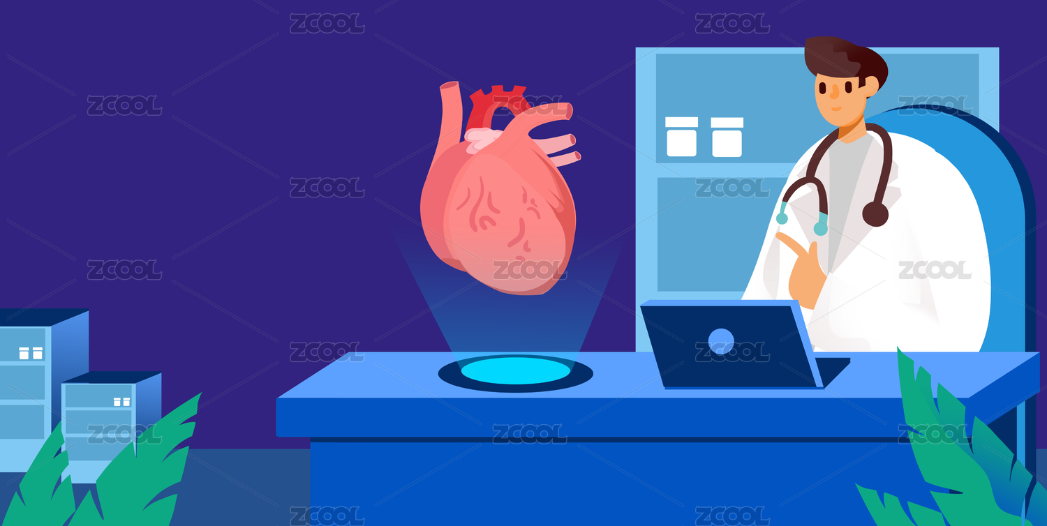 卡通手绘心脏病心肌梗塞医疗护理插画