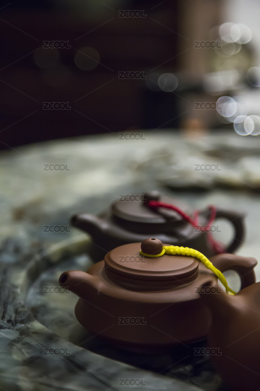 中国宜兴紫砂茶壶和玉石茶台