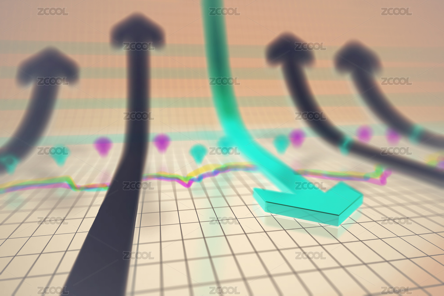 3D插画,下落箭头与地球,全球经济衰落