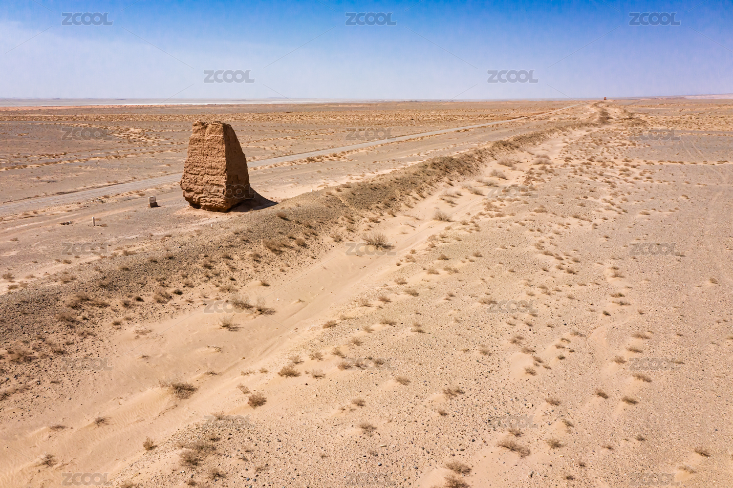 中国甘肃张掖明长城烽火台堑壕遗址航拍