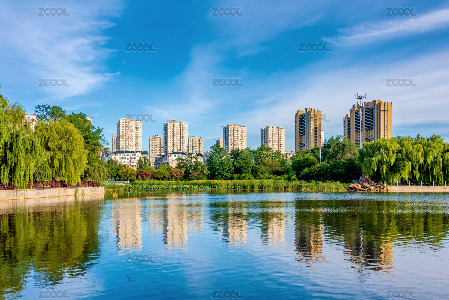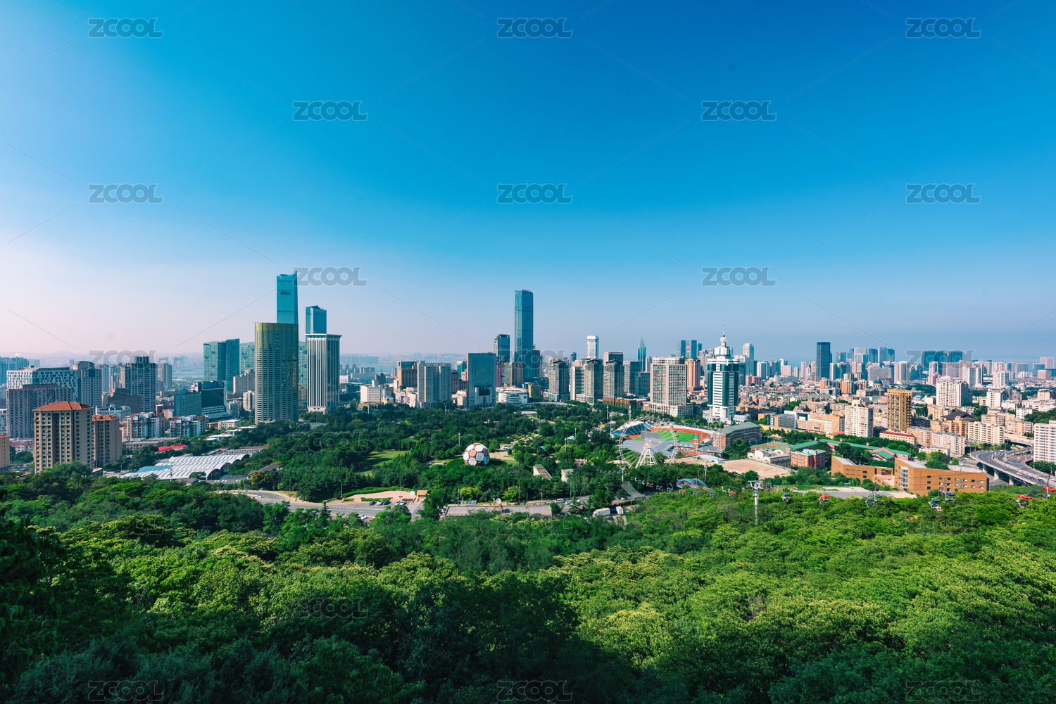 中国辽宁大连劳动公园城市一角风光