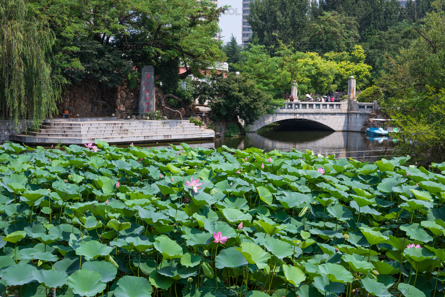 大连劳动公园夏天的荷花池