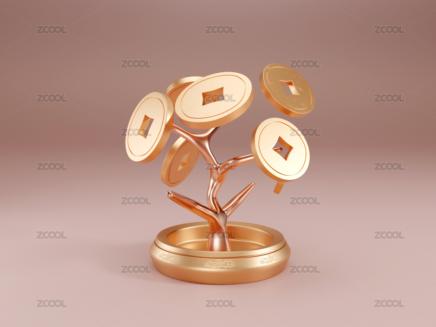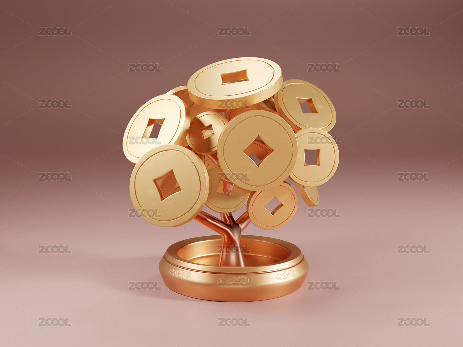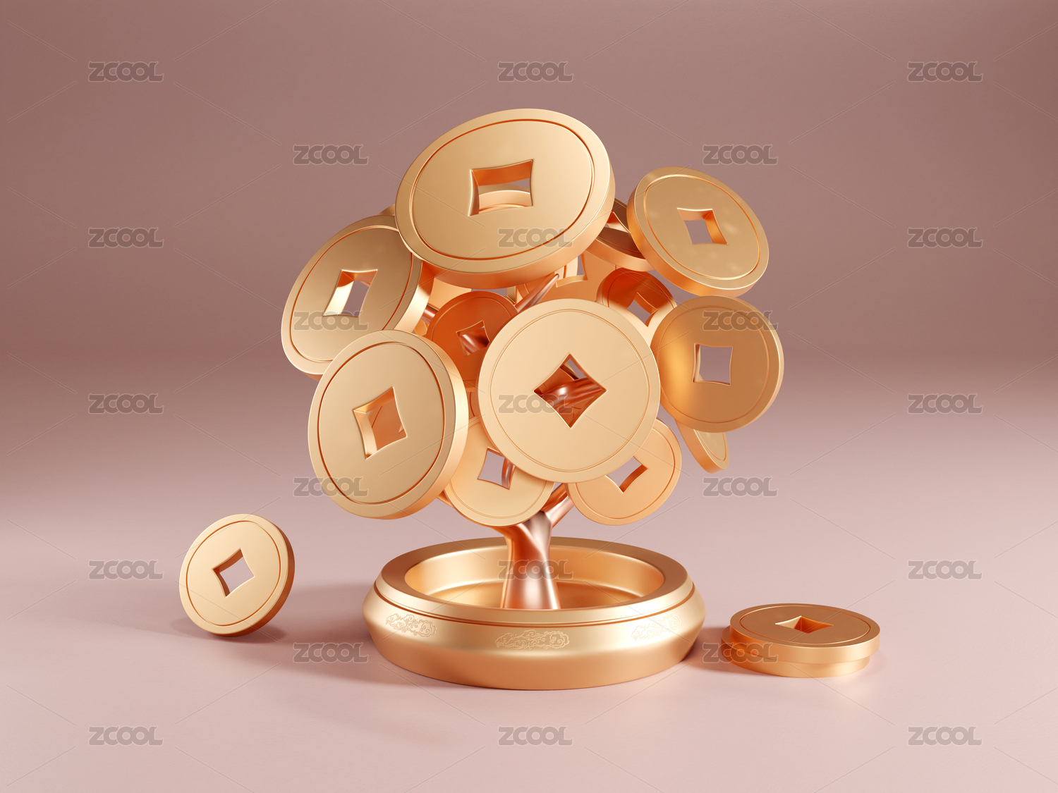 金币铜币钱币立体铜钱发财暴富新春春节元素