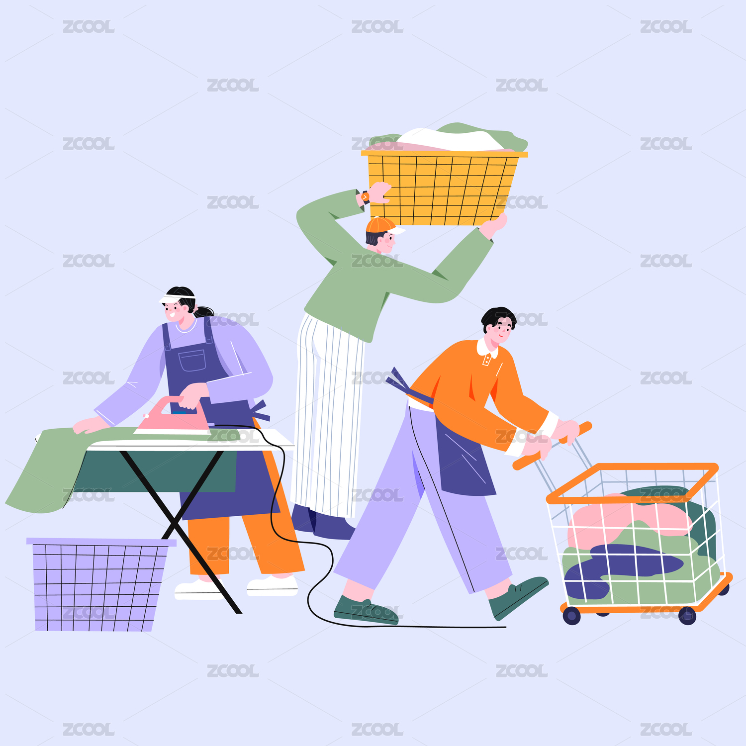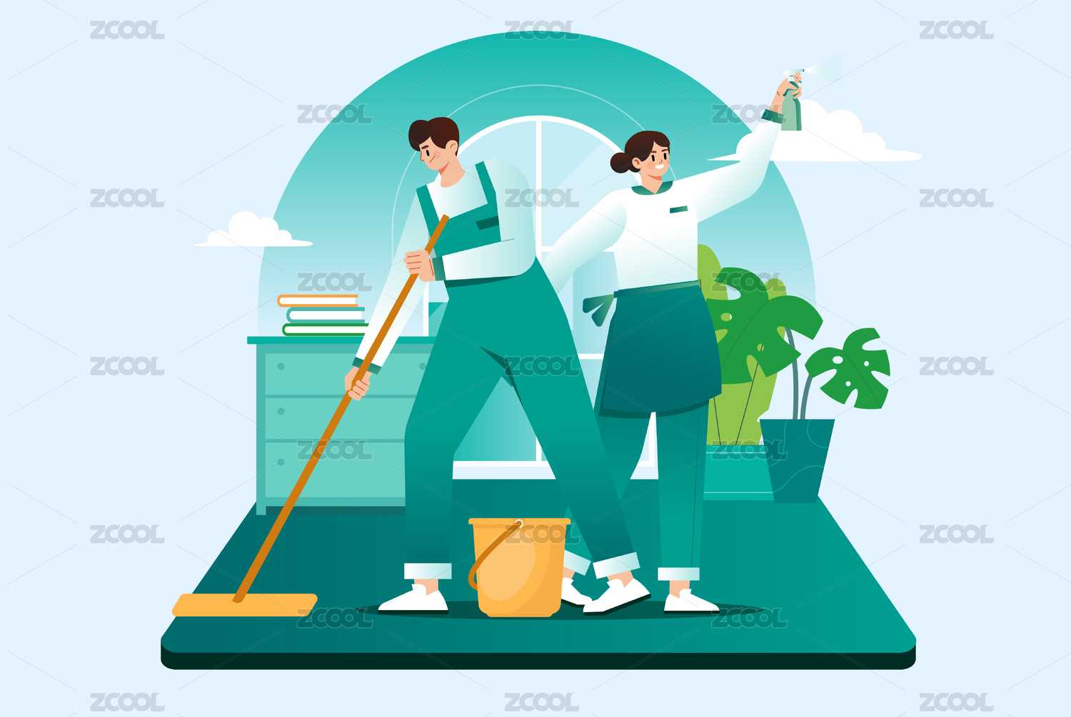家政保洁劳动节人物大扫除打扫地板节日插画