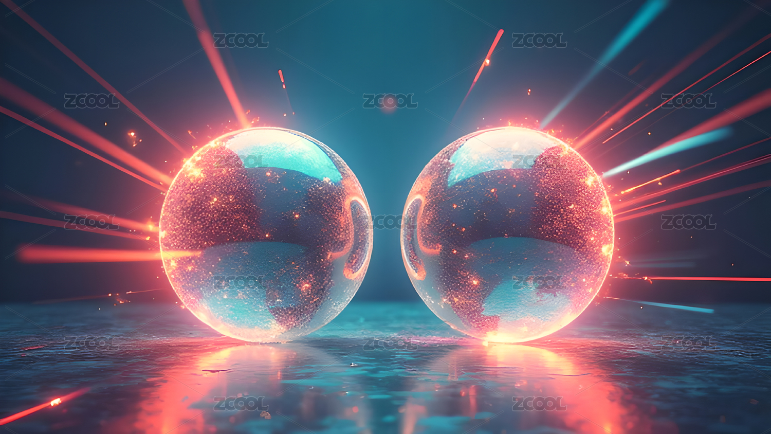 极简两个圆球彩色线性光背景素材图