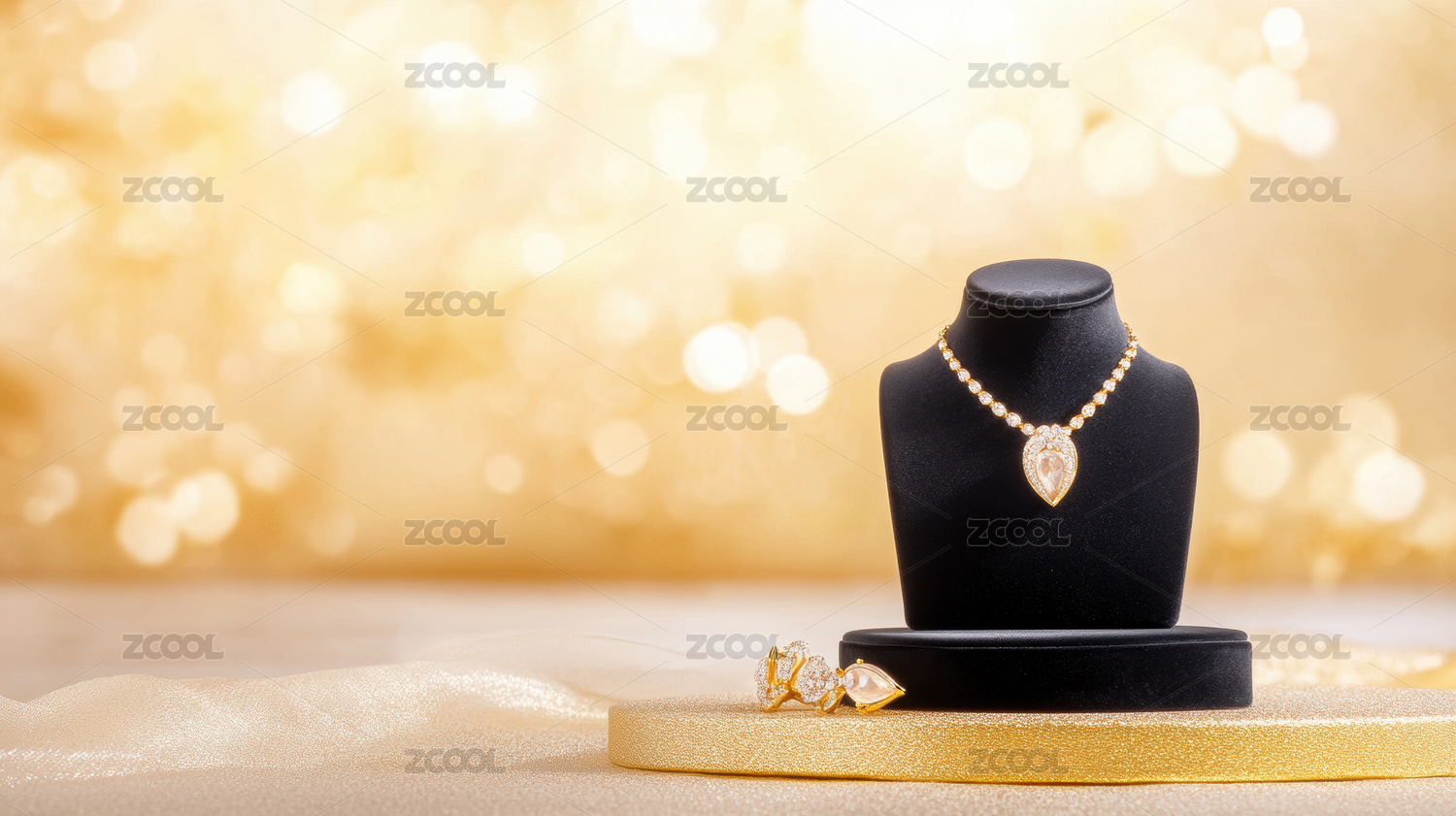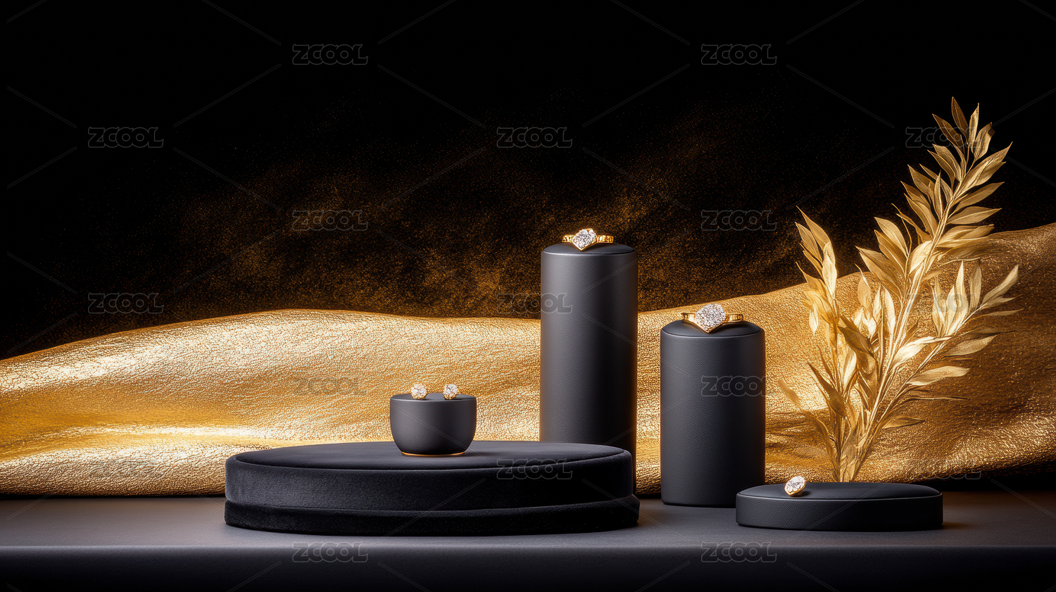 金色珠宝陈列台与奢华背景