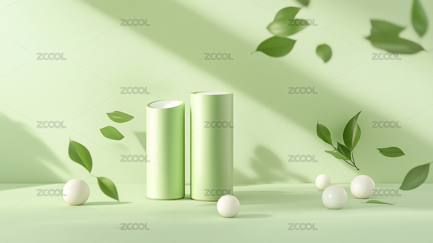 绿色树叶背景静物商品展示台