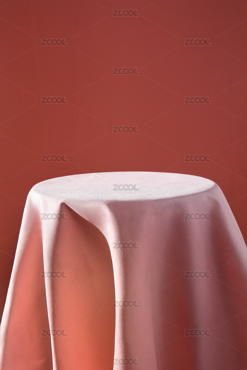 带有粉色桌布的空桌面,用于背景素材合成