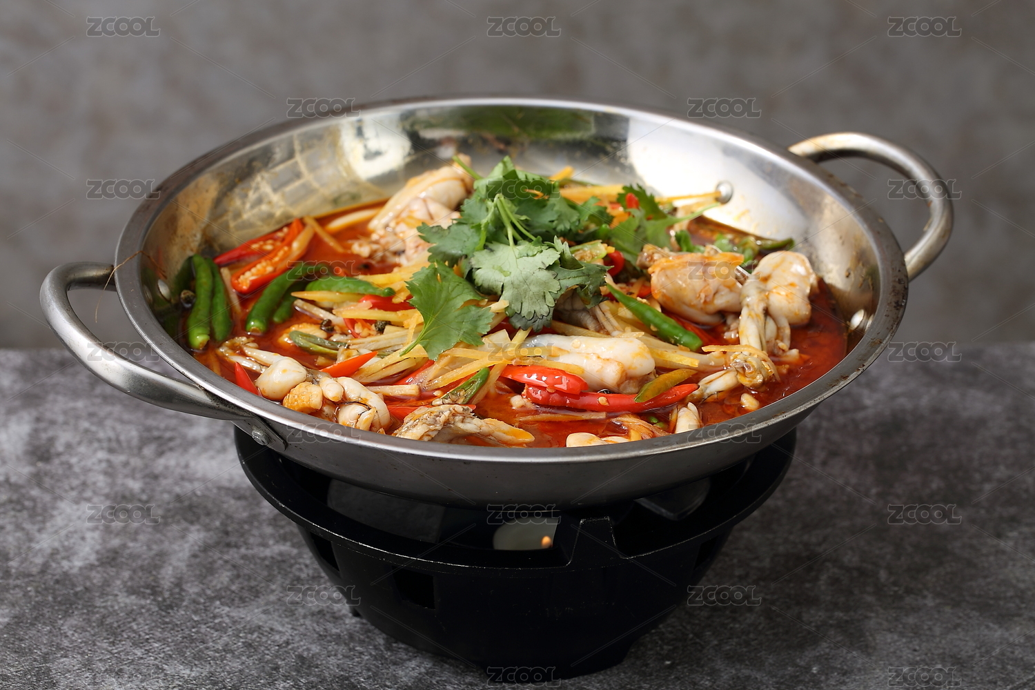不锈钢锅里小米椒的麻辣牛蛙