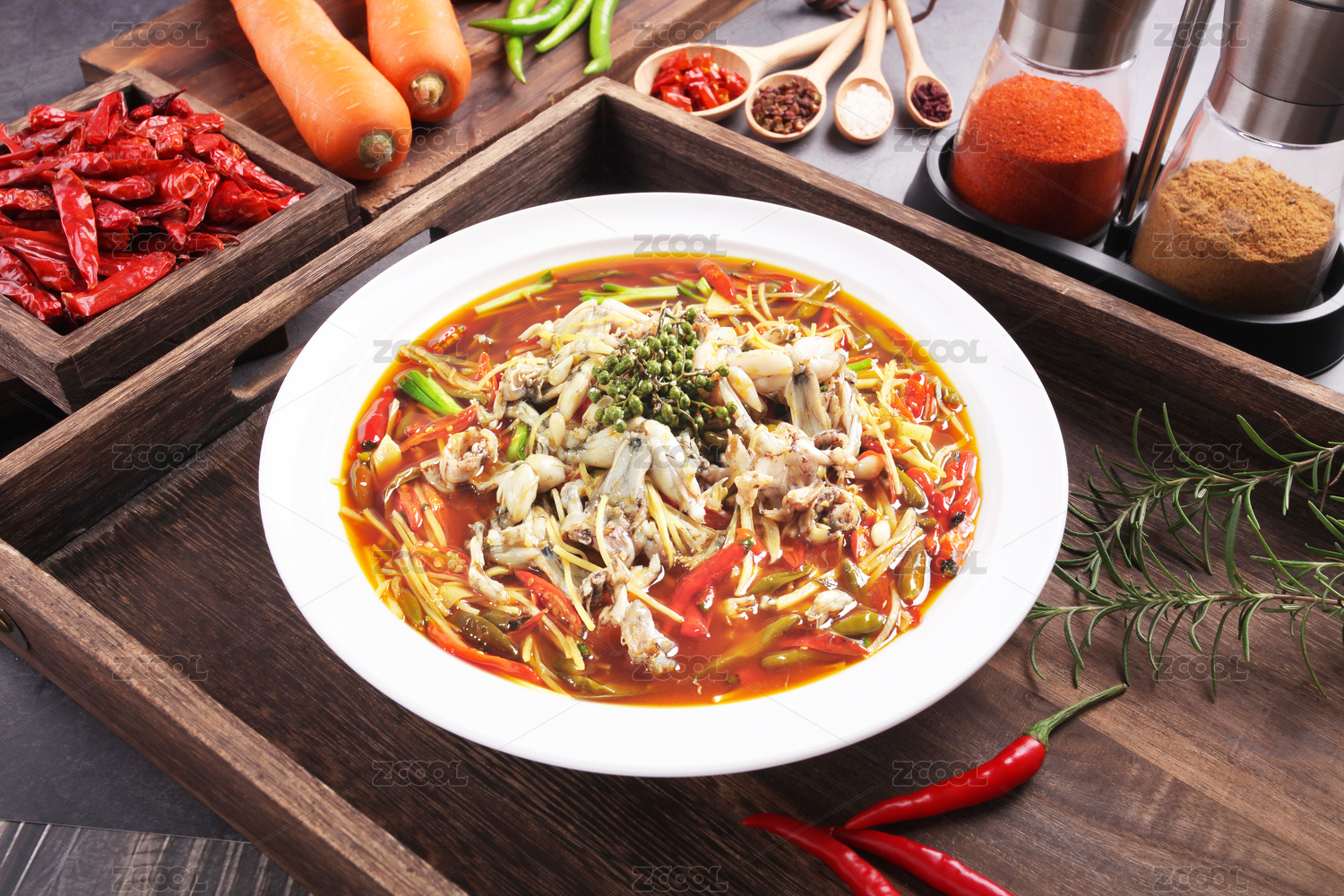 盘子里的江湖菜川菜水煮牛蛙麻辣牛蛙