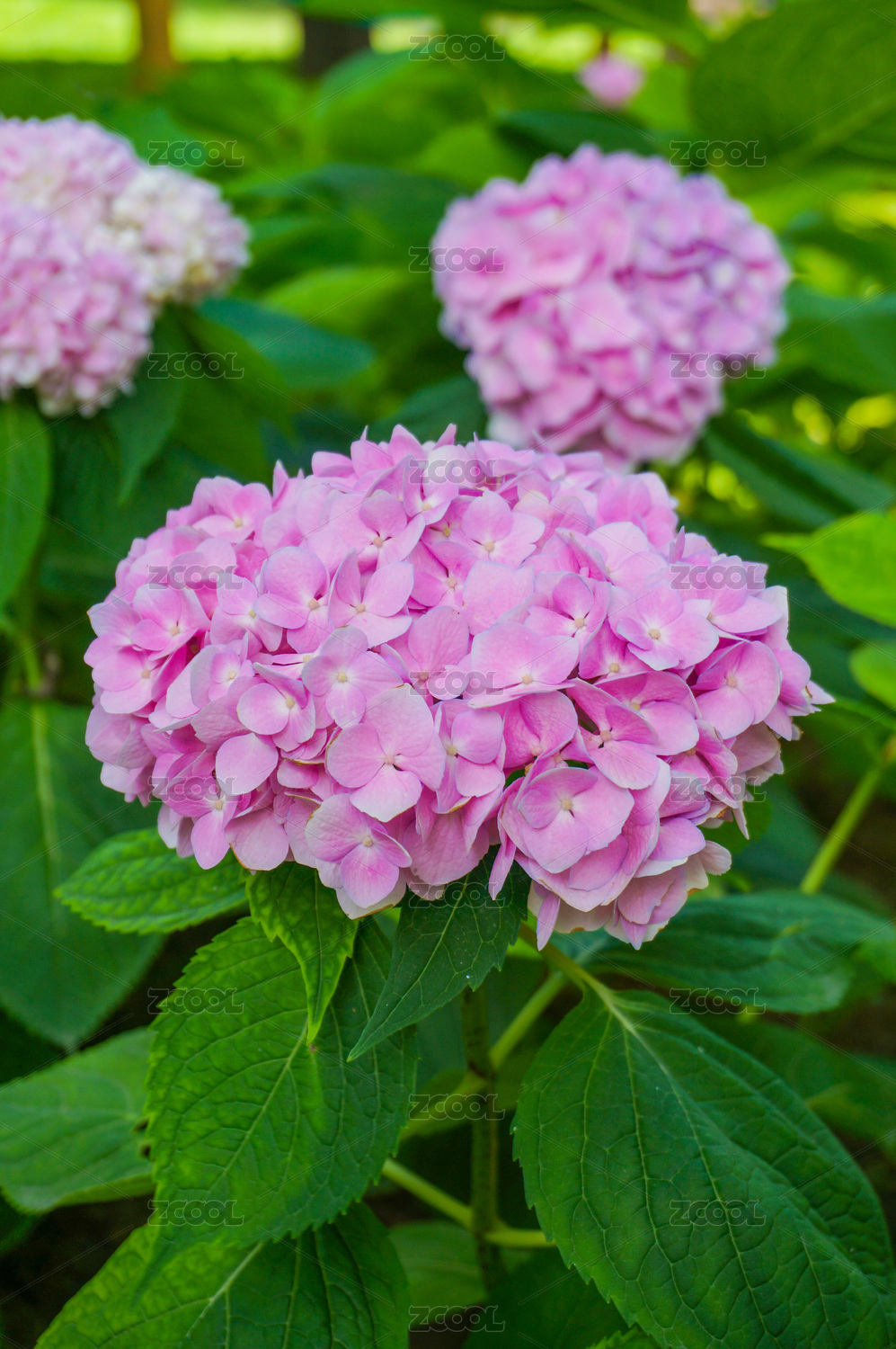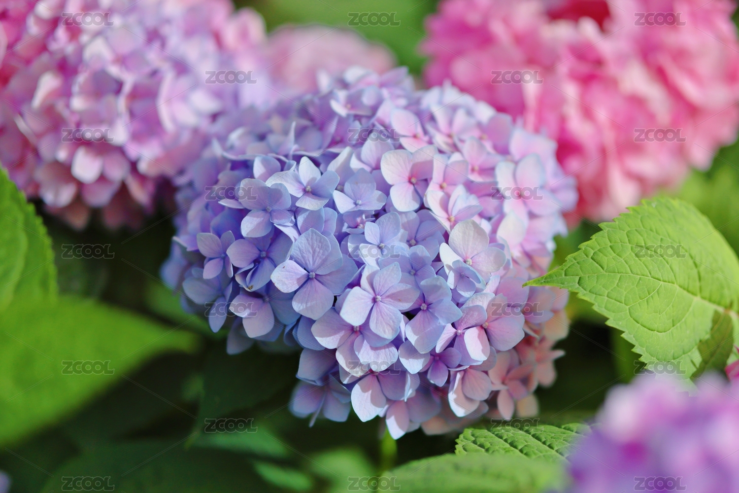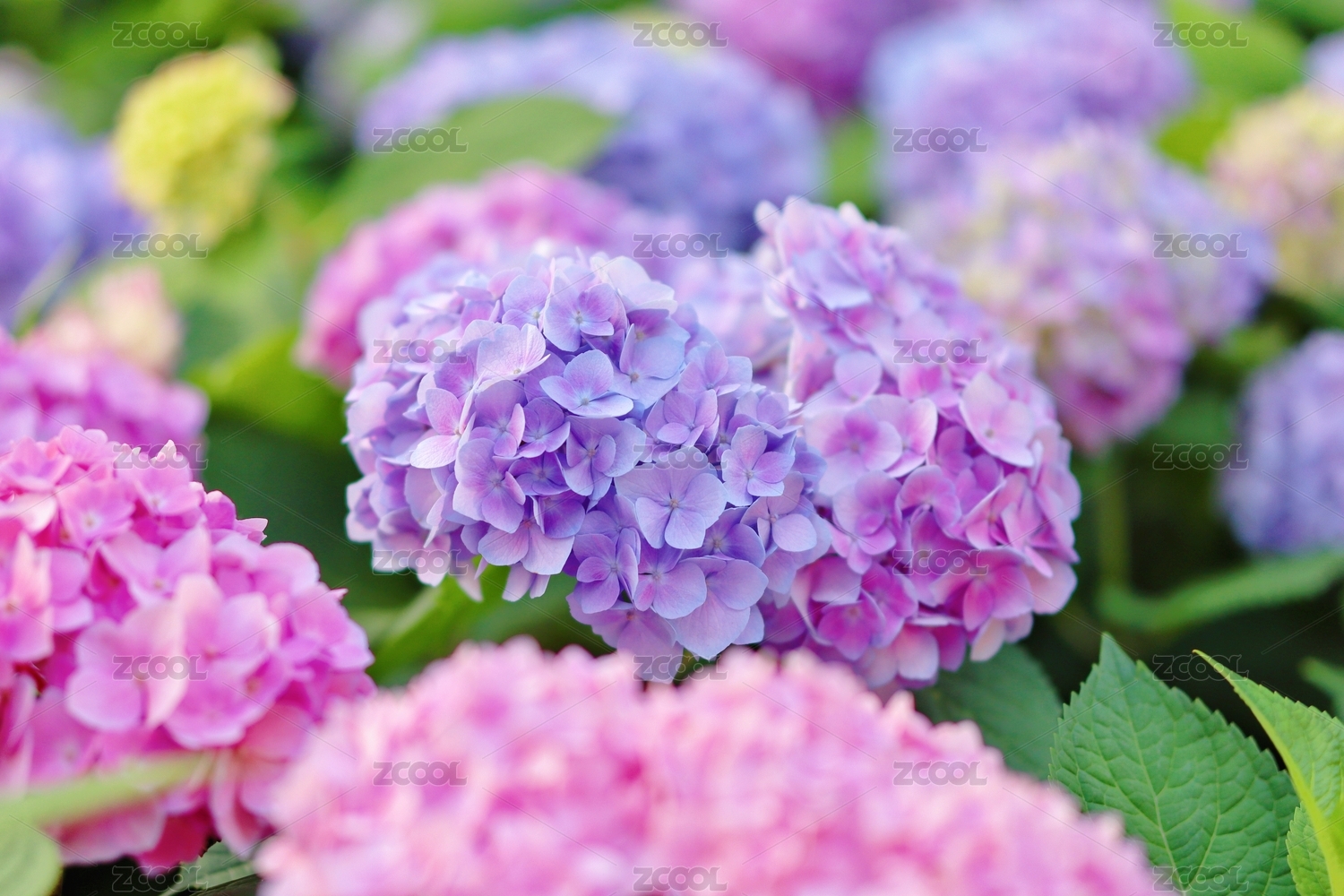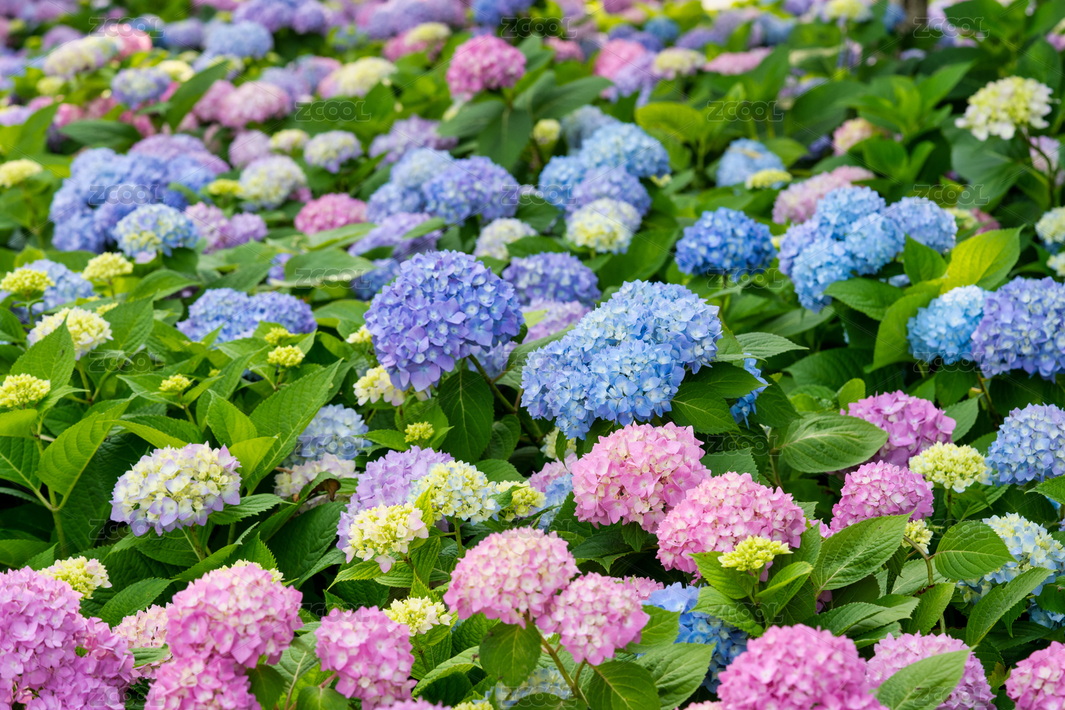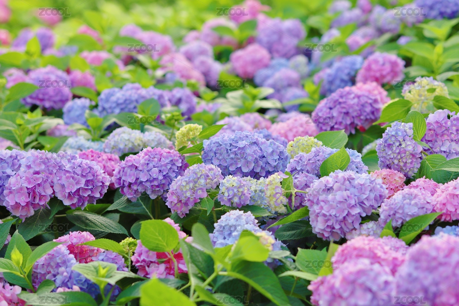 公园草坪上盛开的红色和紫色无尽夏花丛