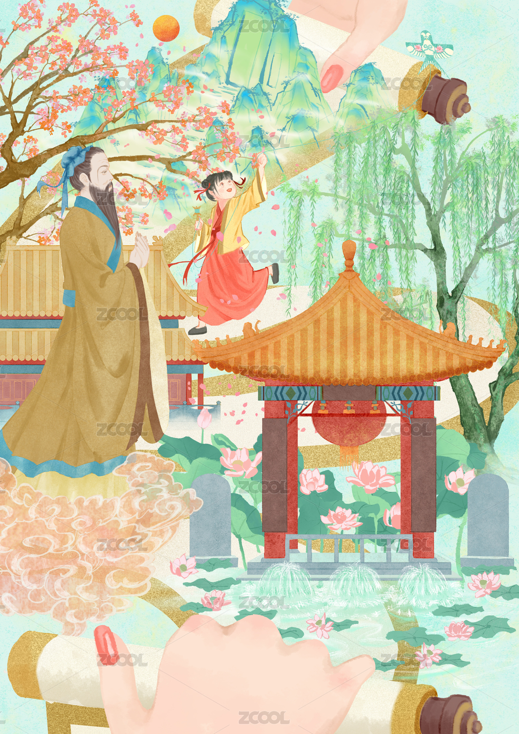 齐鲁文化山东景点趵突泉泰山孔子荷花柳树