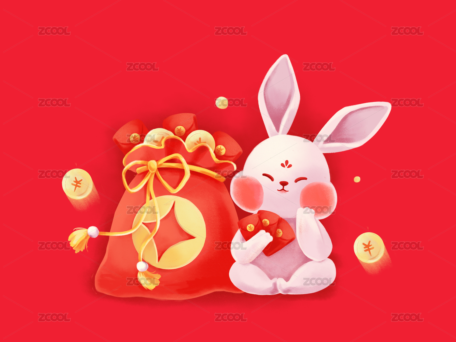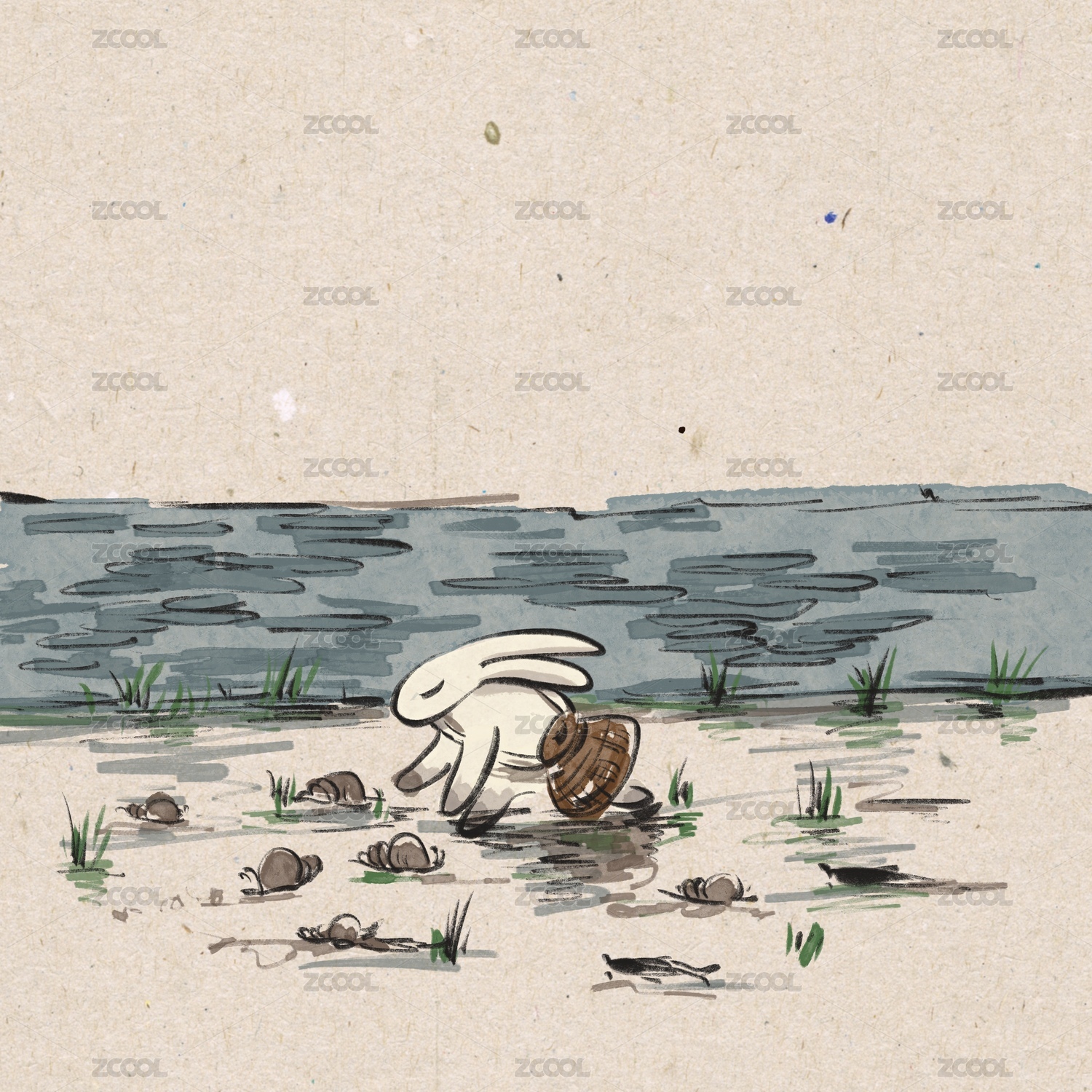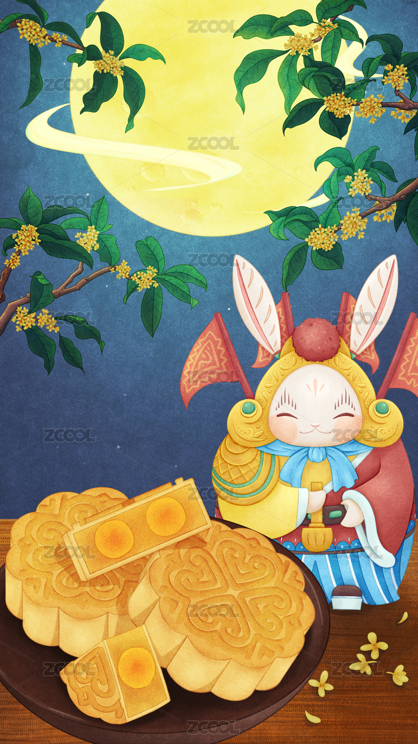 中秋节吃月饼喝桂花酿的兔子们国风插画