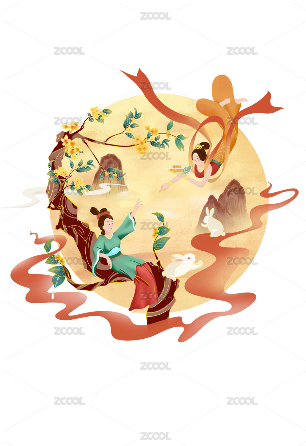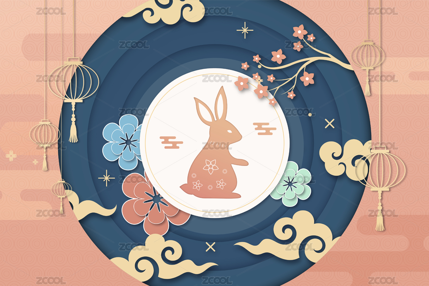 中秋节传统节日月饼玉兔嫦娥奔月美食活动送