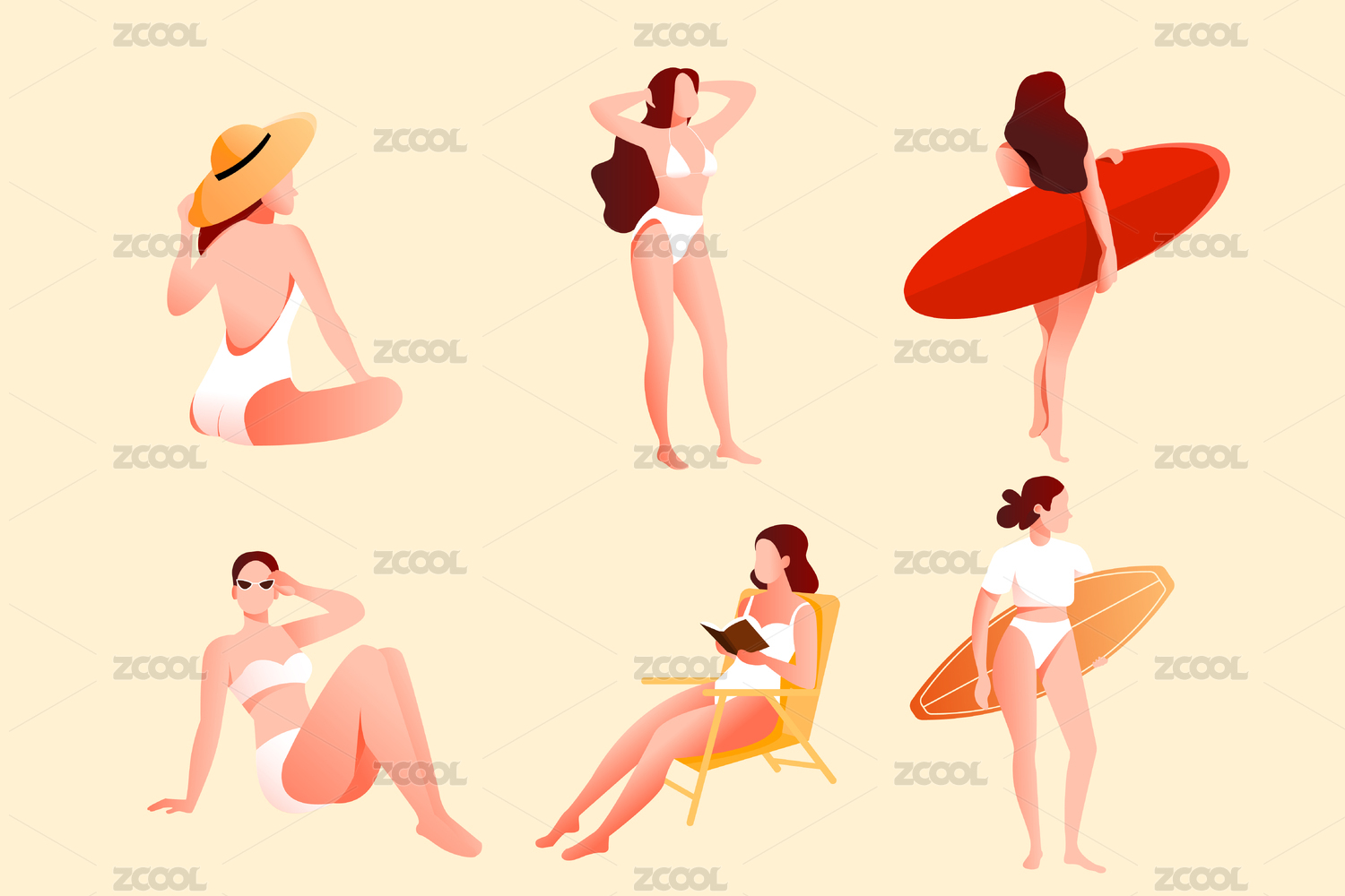 夏天海边插画矢量图