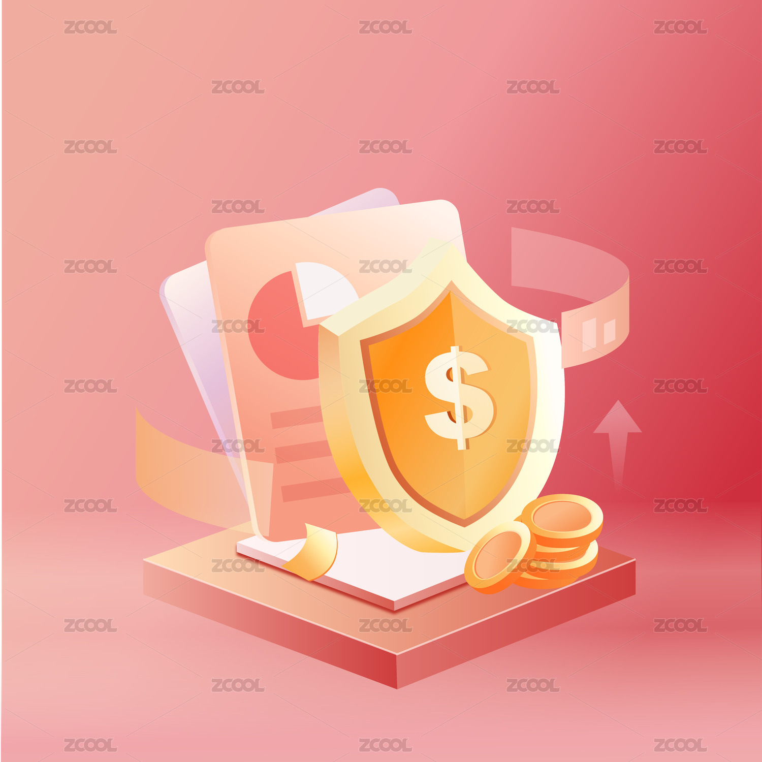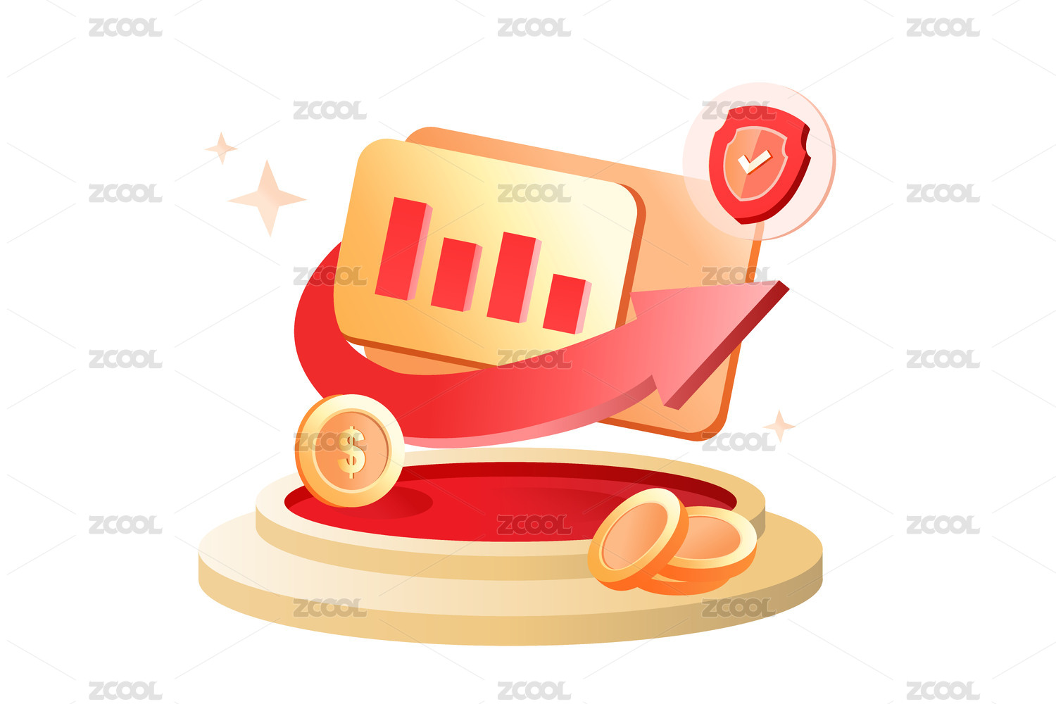 金融商务感红橙互联网活动数据增长矢量图