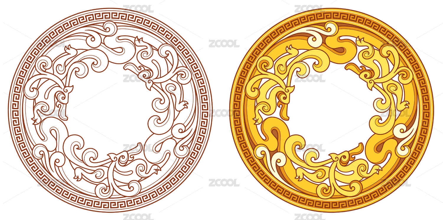 三兽奔跑装饰环纹矢量图