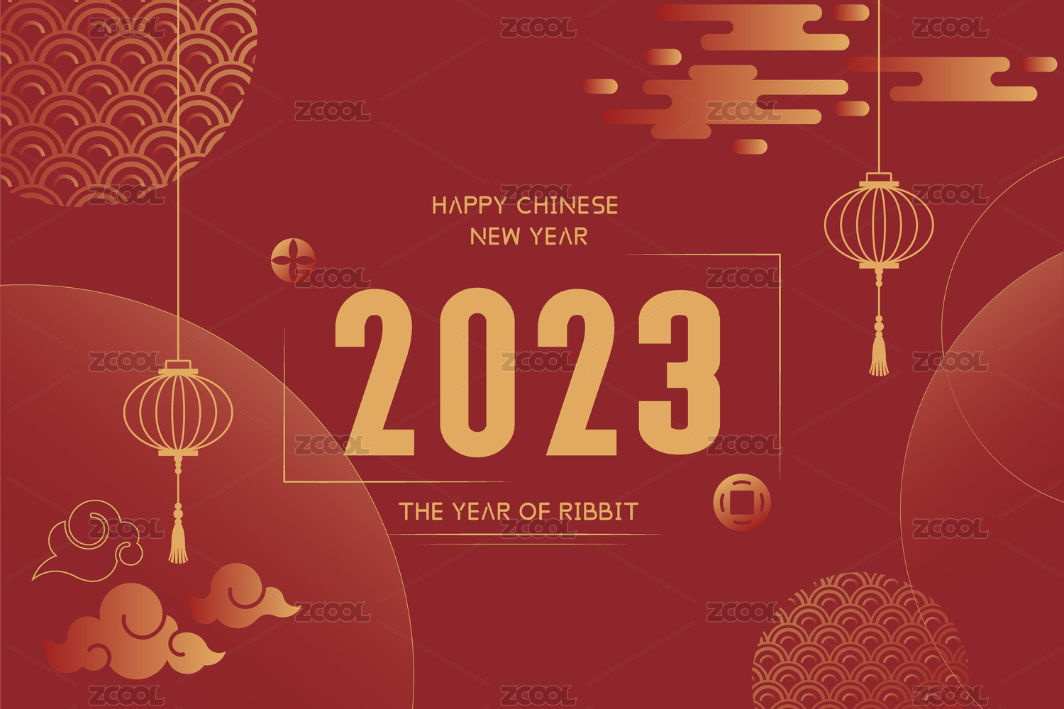 2023新年祥云灯笼矢量图标几何元素