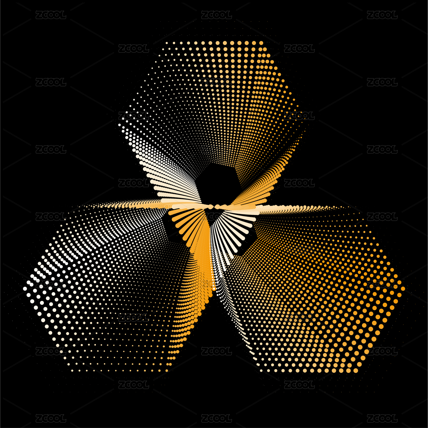 黑底渐变线条组成的花朵矢量图