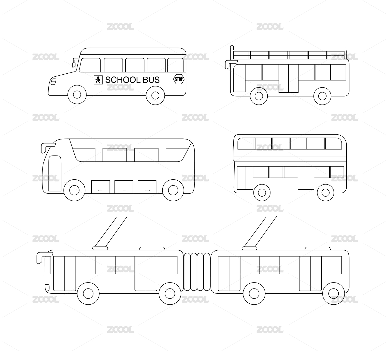 校车公交车合集轮廓矢量图