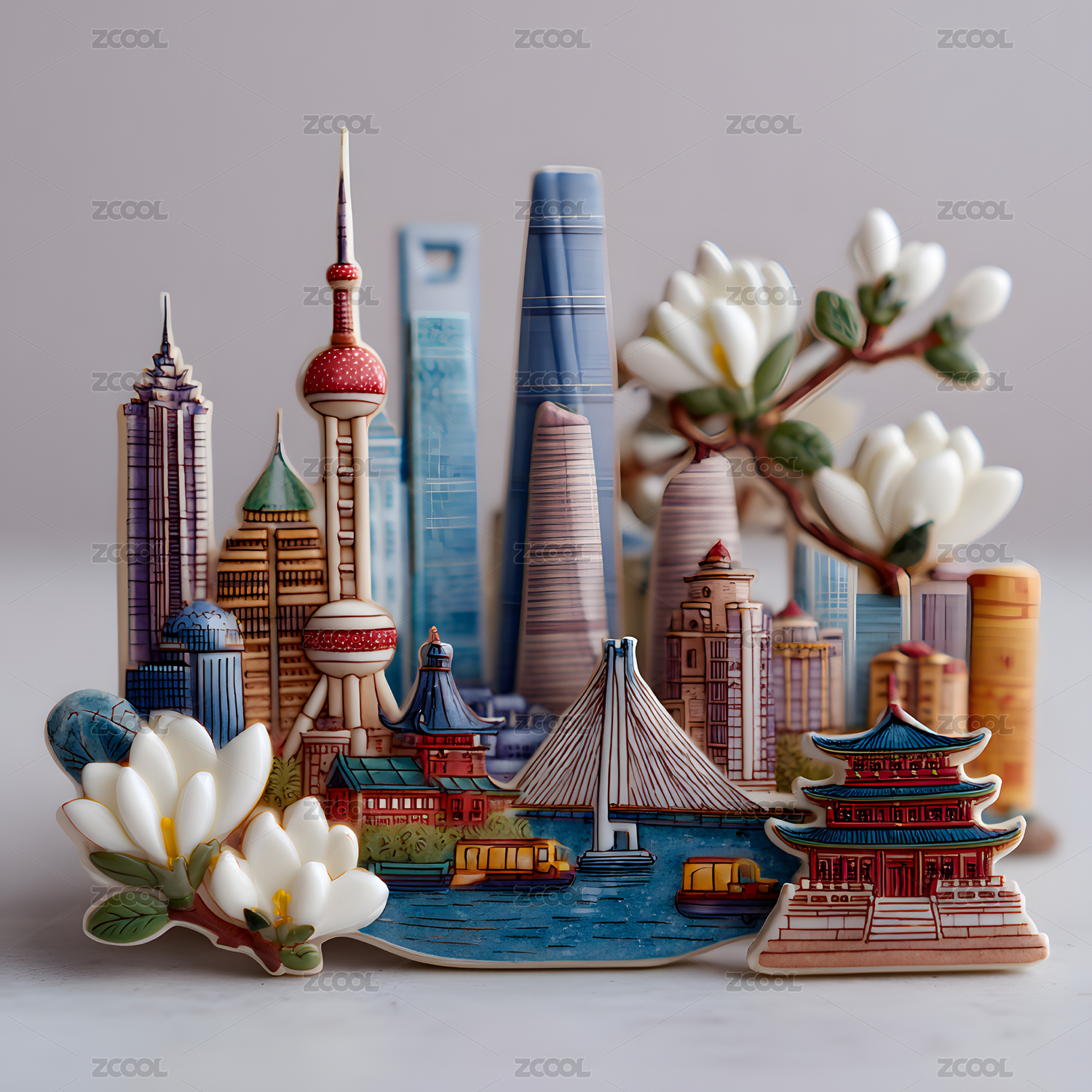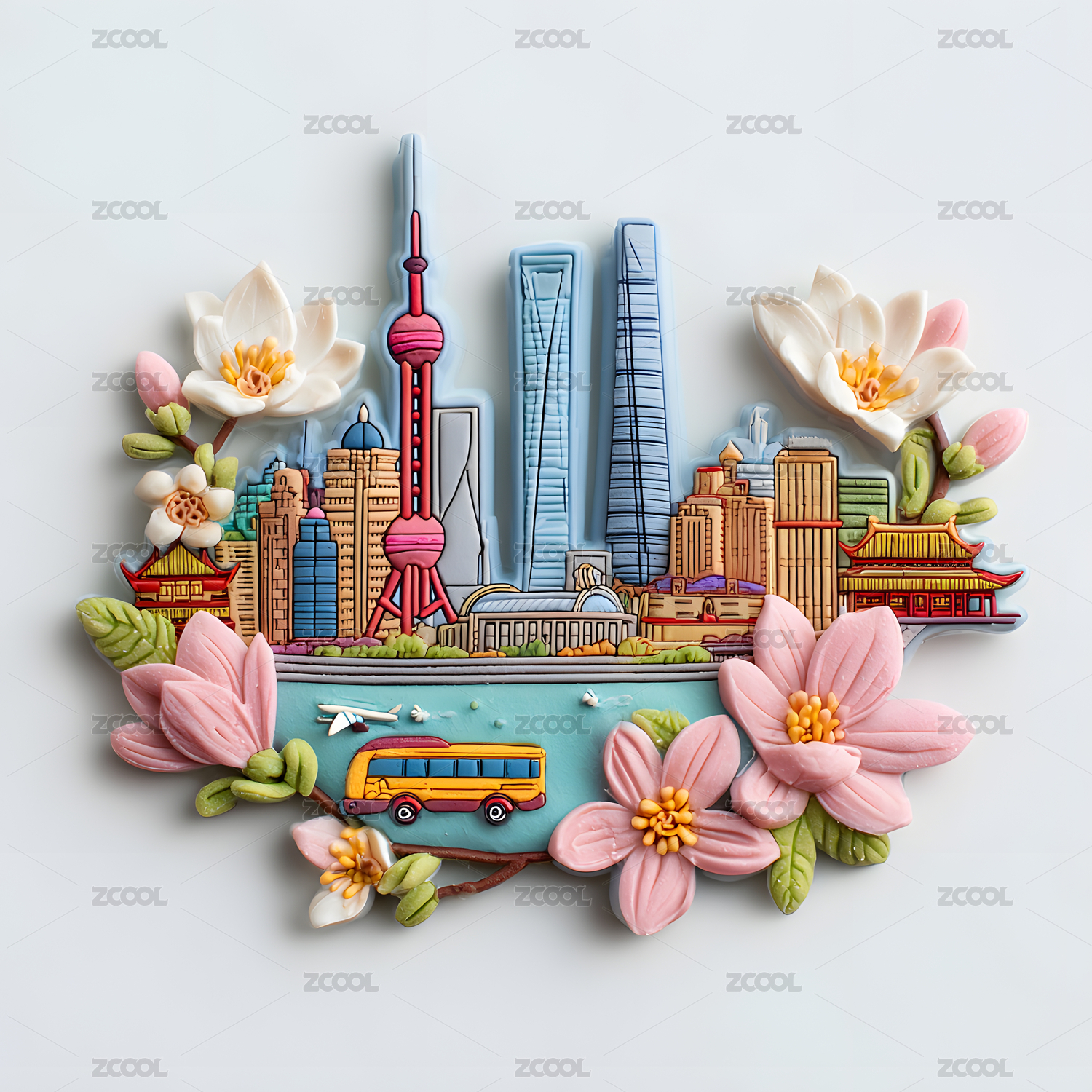 城市地标冰箱贴设计——上海