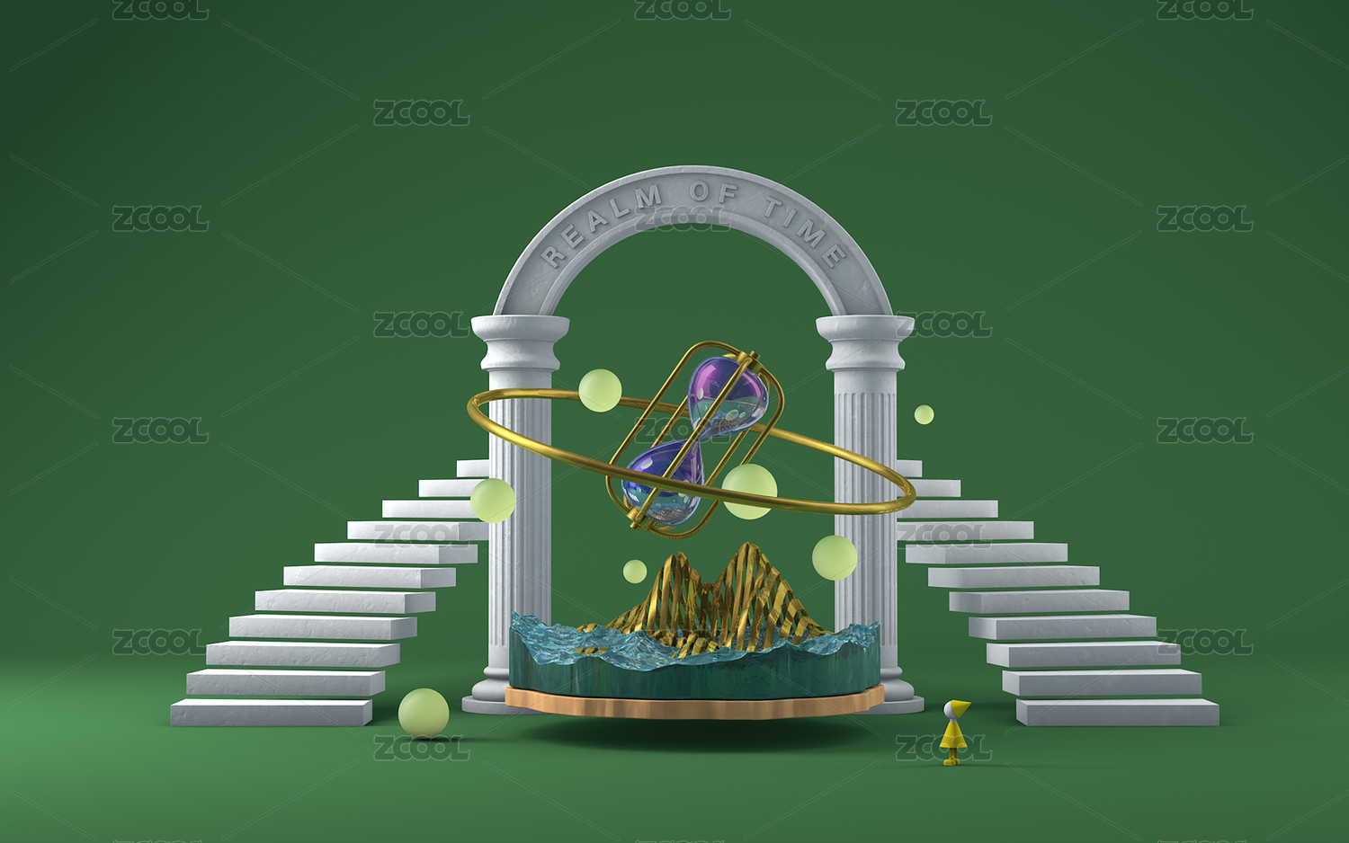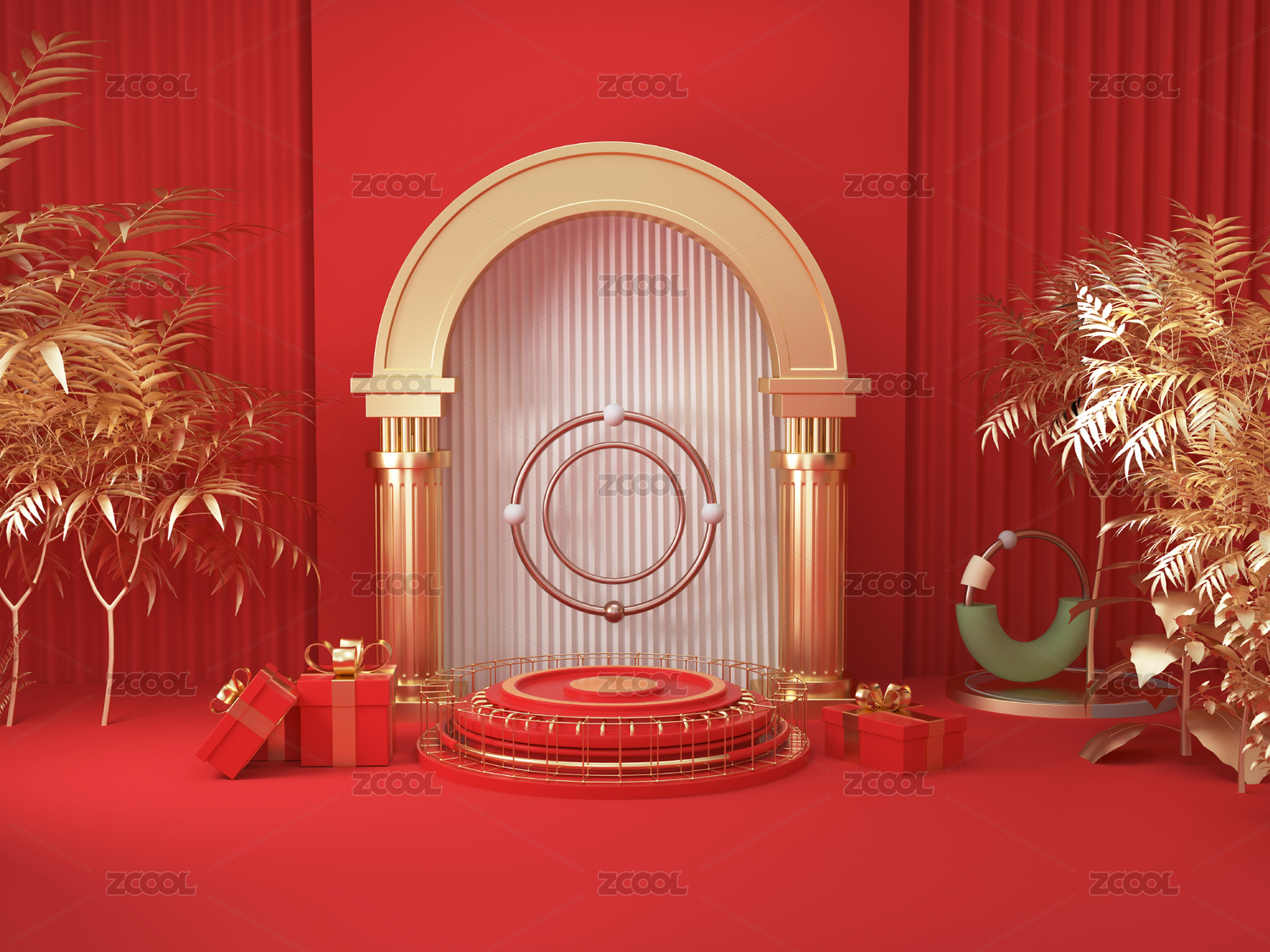 红色三维场景促销背景金色罗马柱舞台节日礼盒