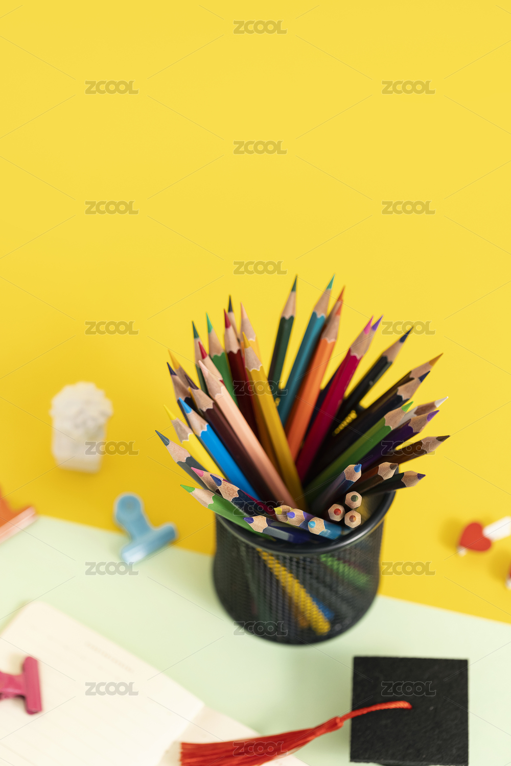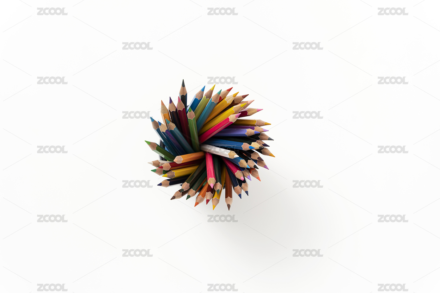 彩铅笔筒俯拍白色背景