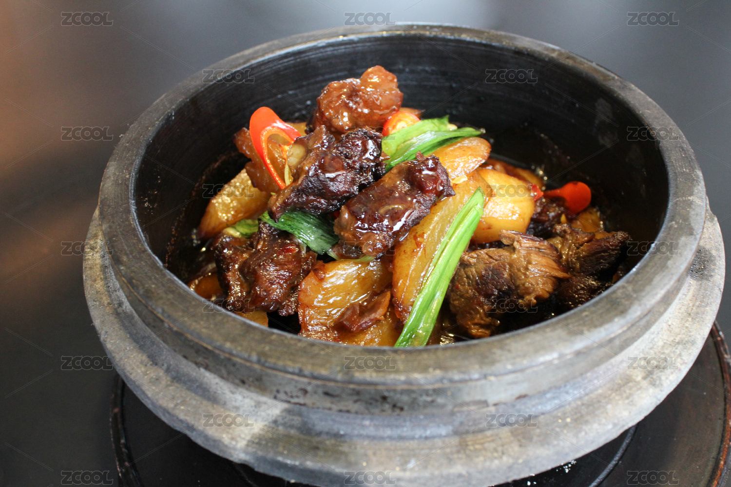 黑色盆炒菜