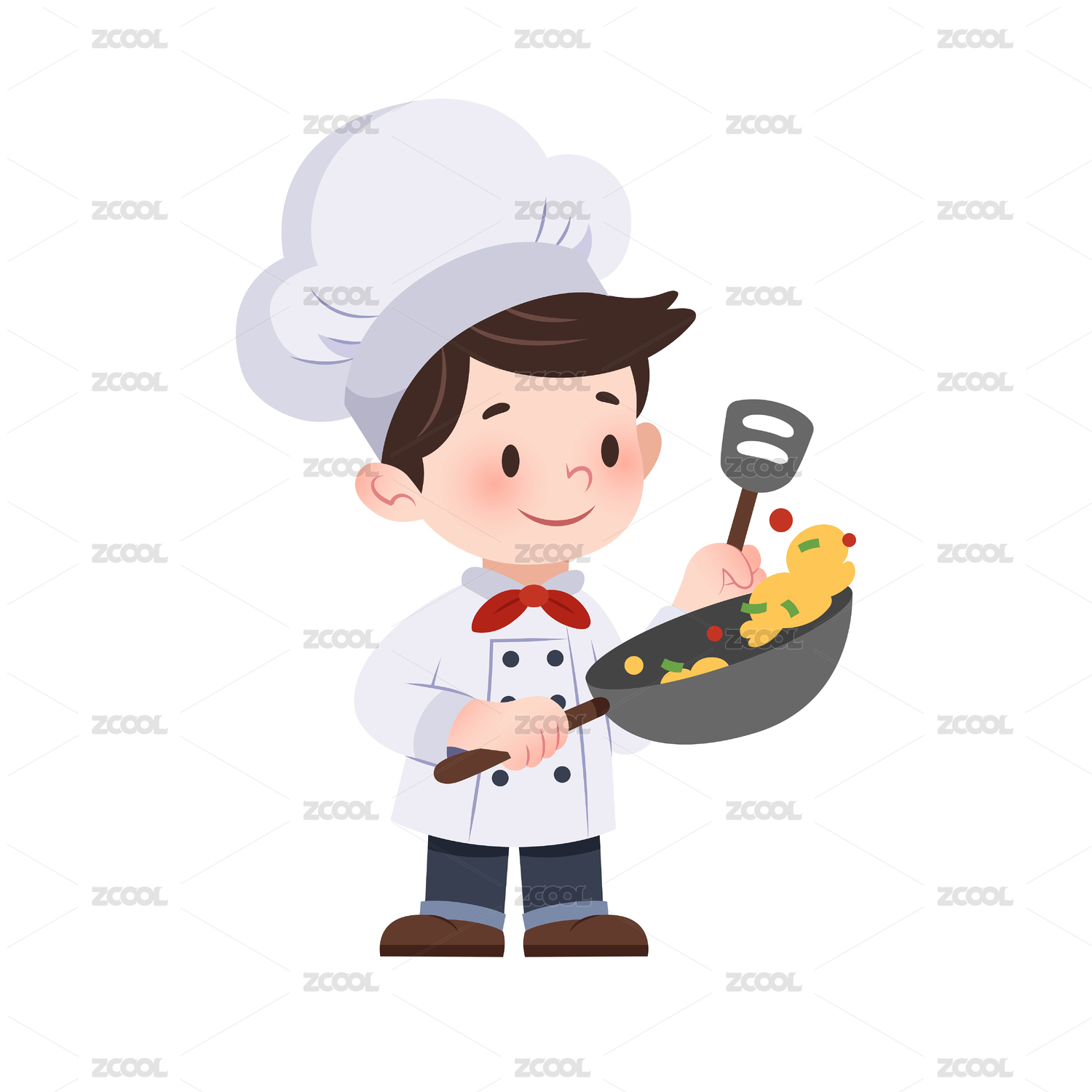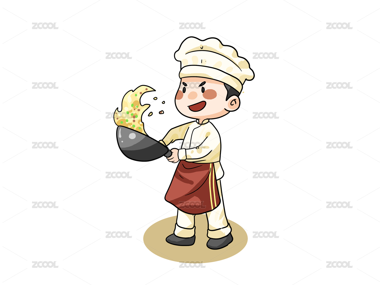 q版厨师红色围裙大幅度炒菜漫画元素