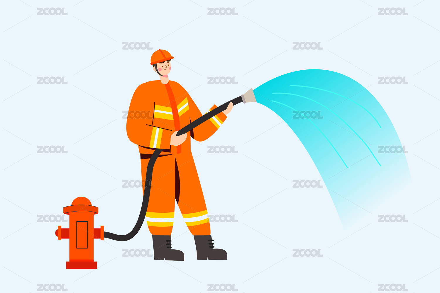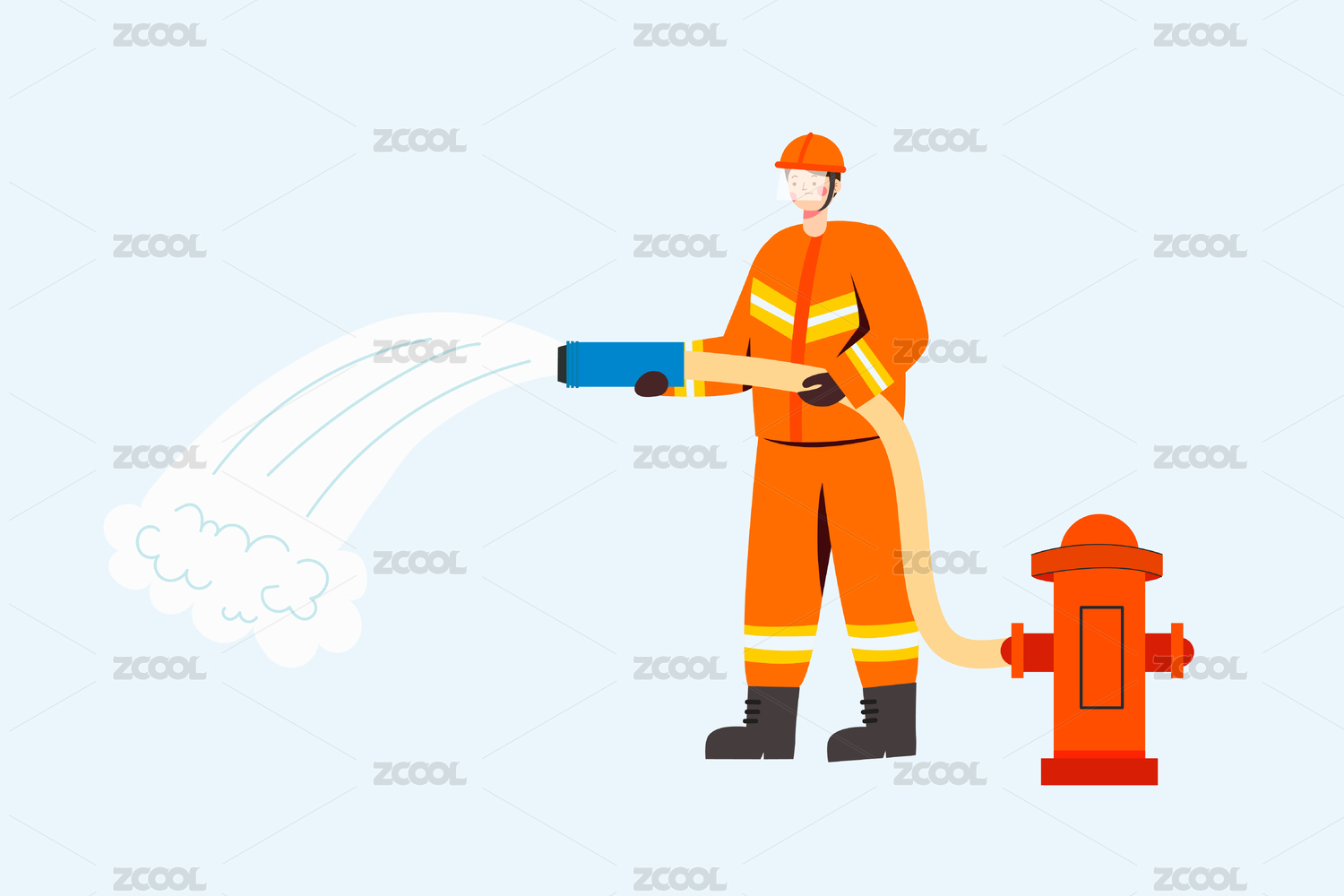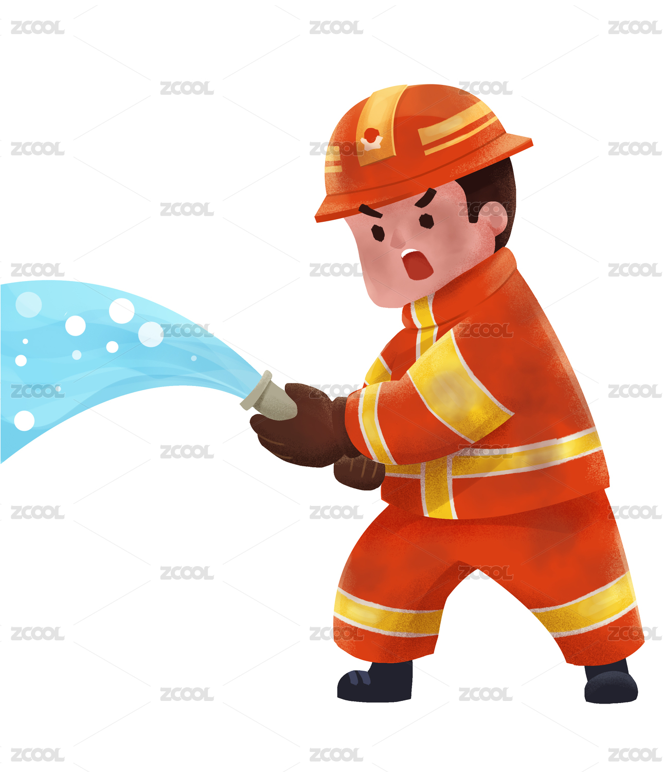 一个拿着高压水枪的消防员插画