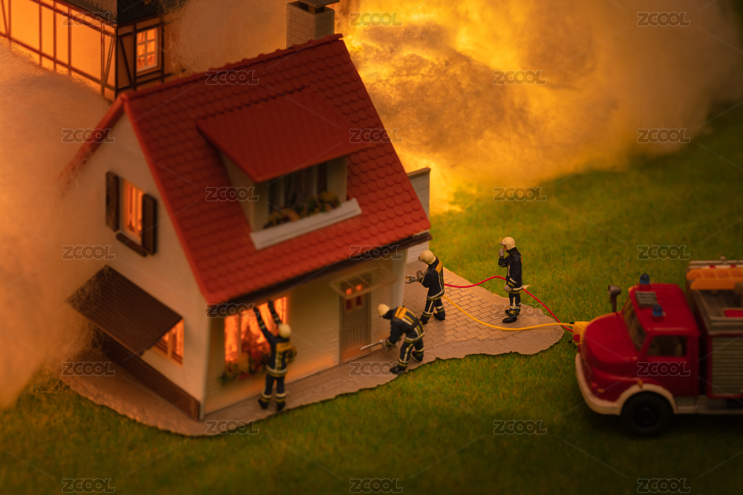 住宅起火119火警消防员救火