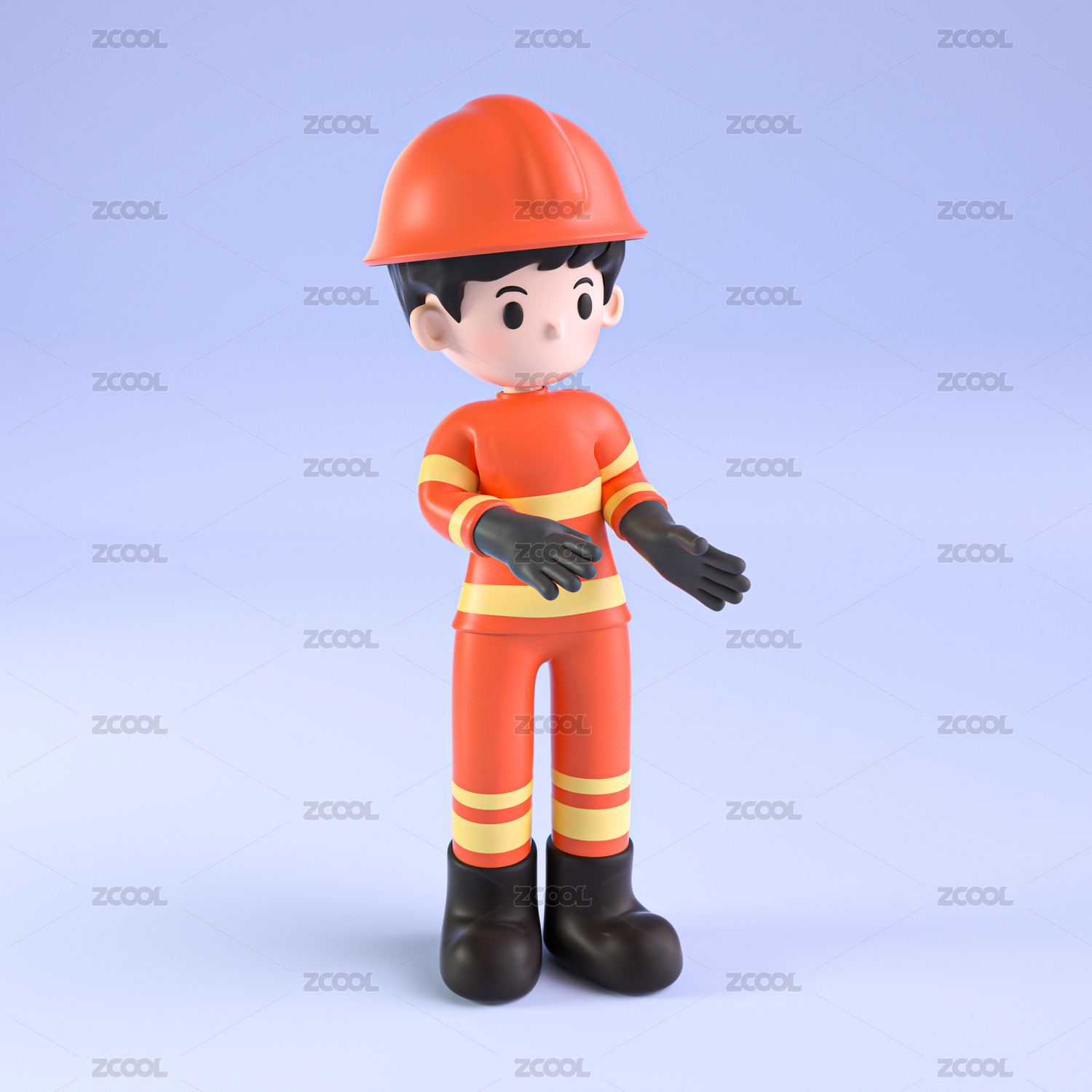 3D渲染卡通消防员
