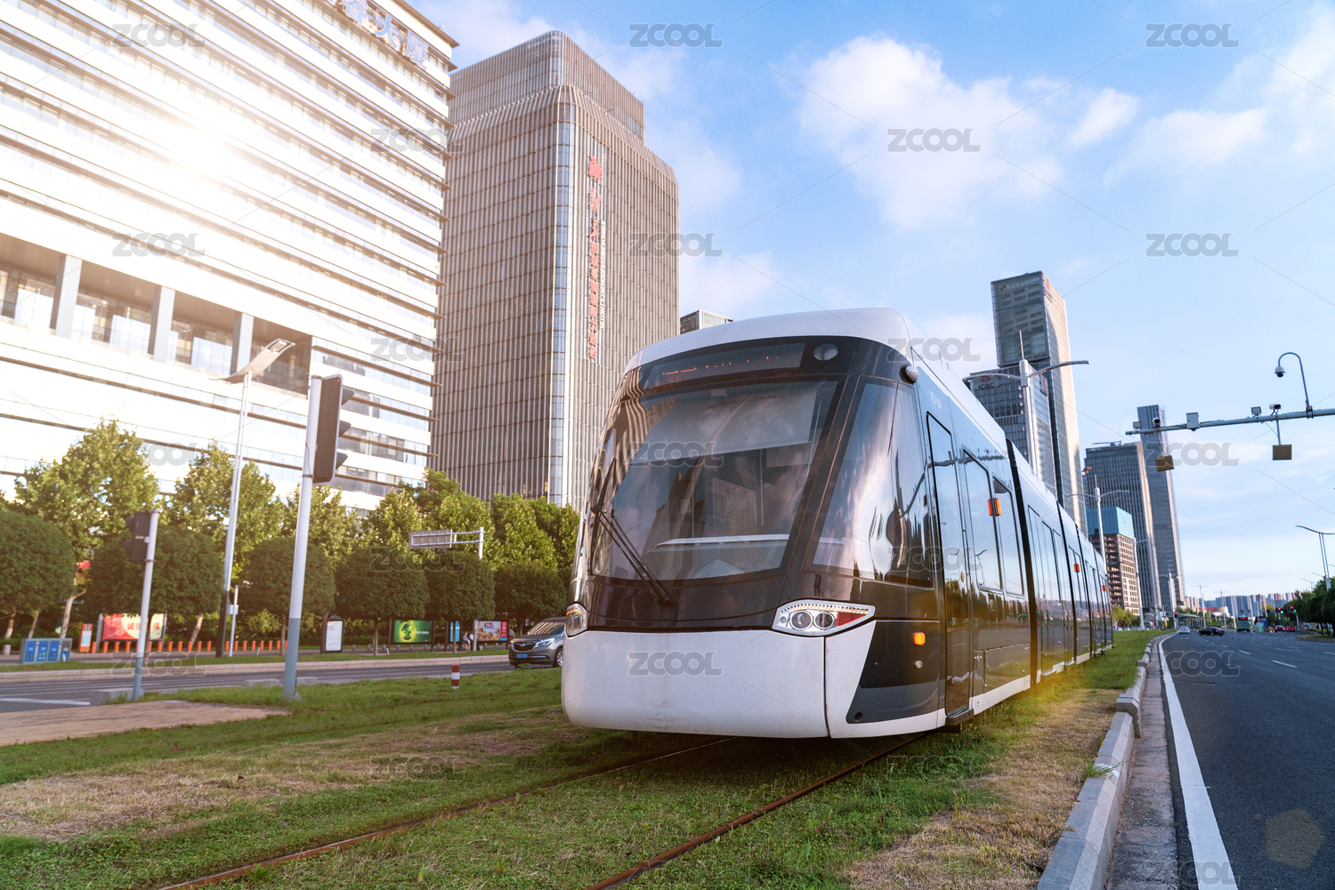 夕阳下的城市有轨电车