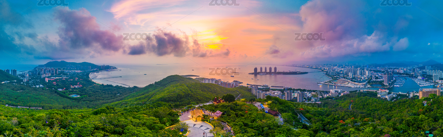 海南三亚鹿回头城市风景航拍大海晚霞全景