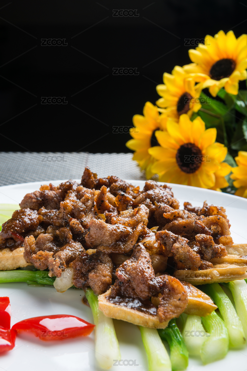 鲜香美味的黑椒牛柳豆腐配芥蓝