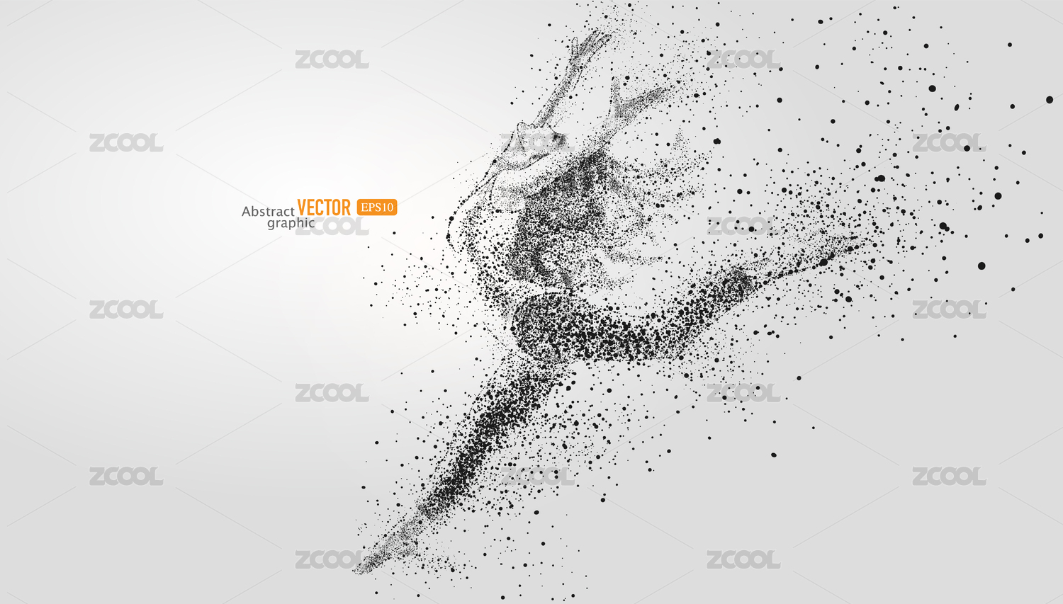 抽象矢量粒子点手绘跳起的女舞蹈演员