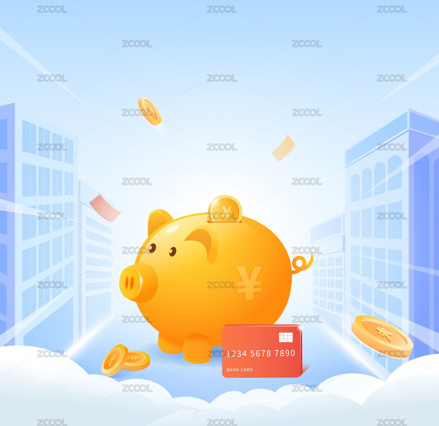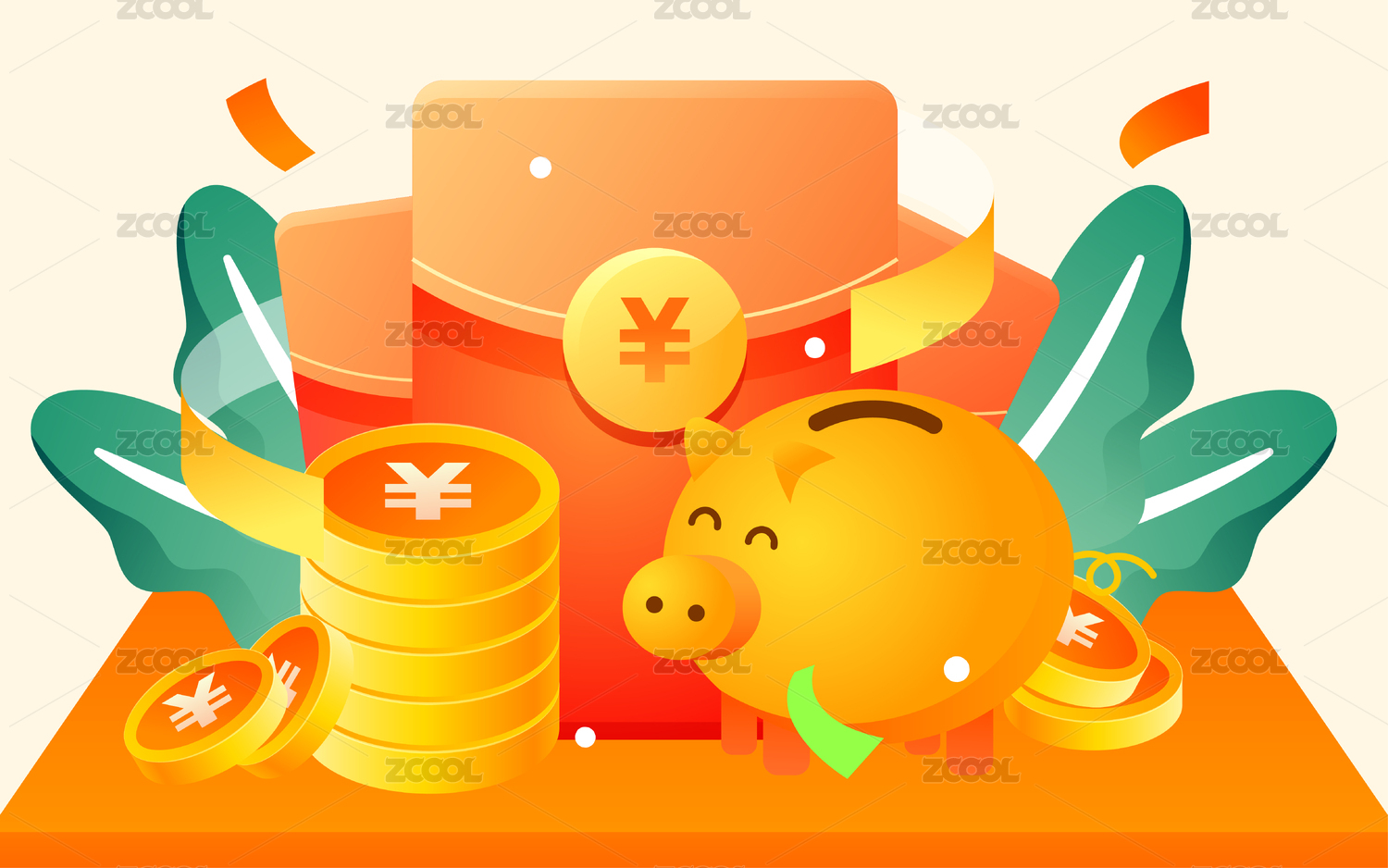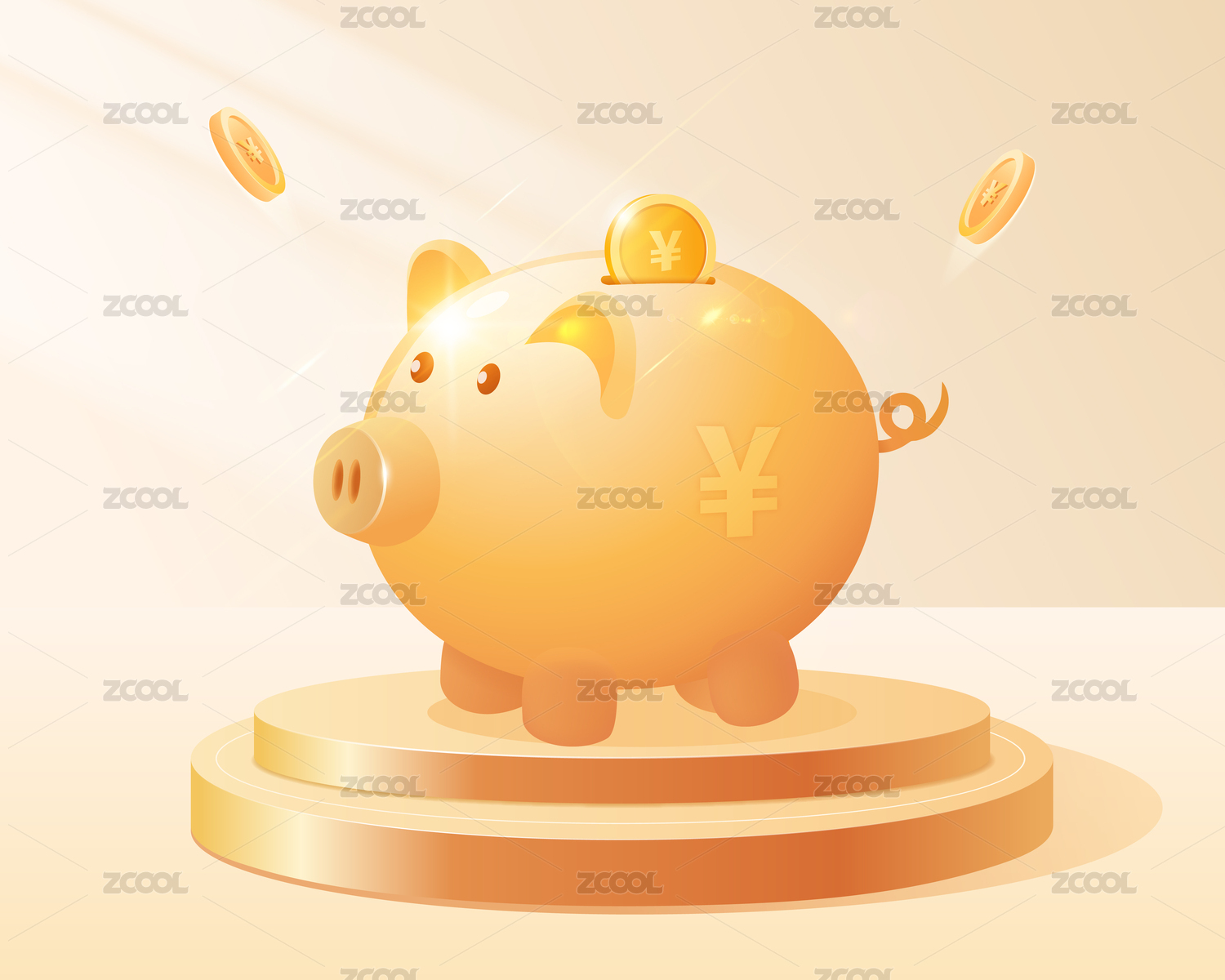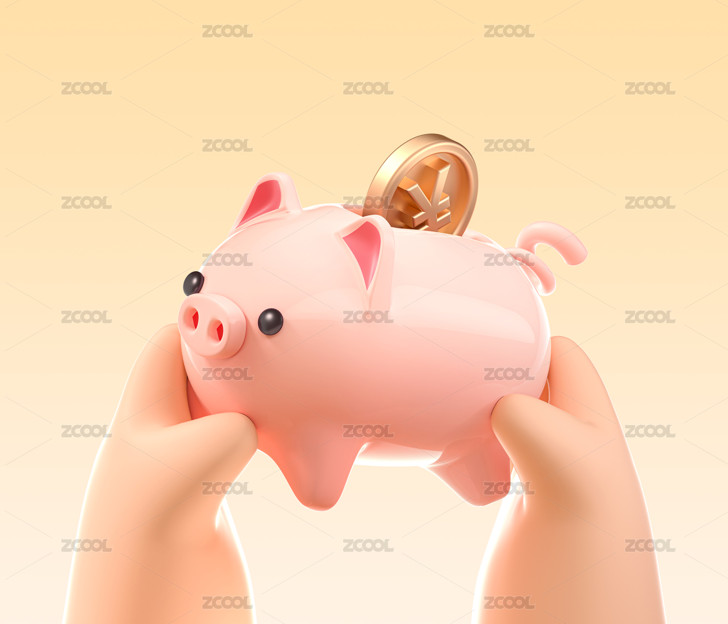 双手拿着小猪金币存钱罐活动配图3D场景
