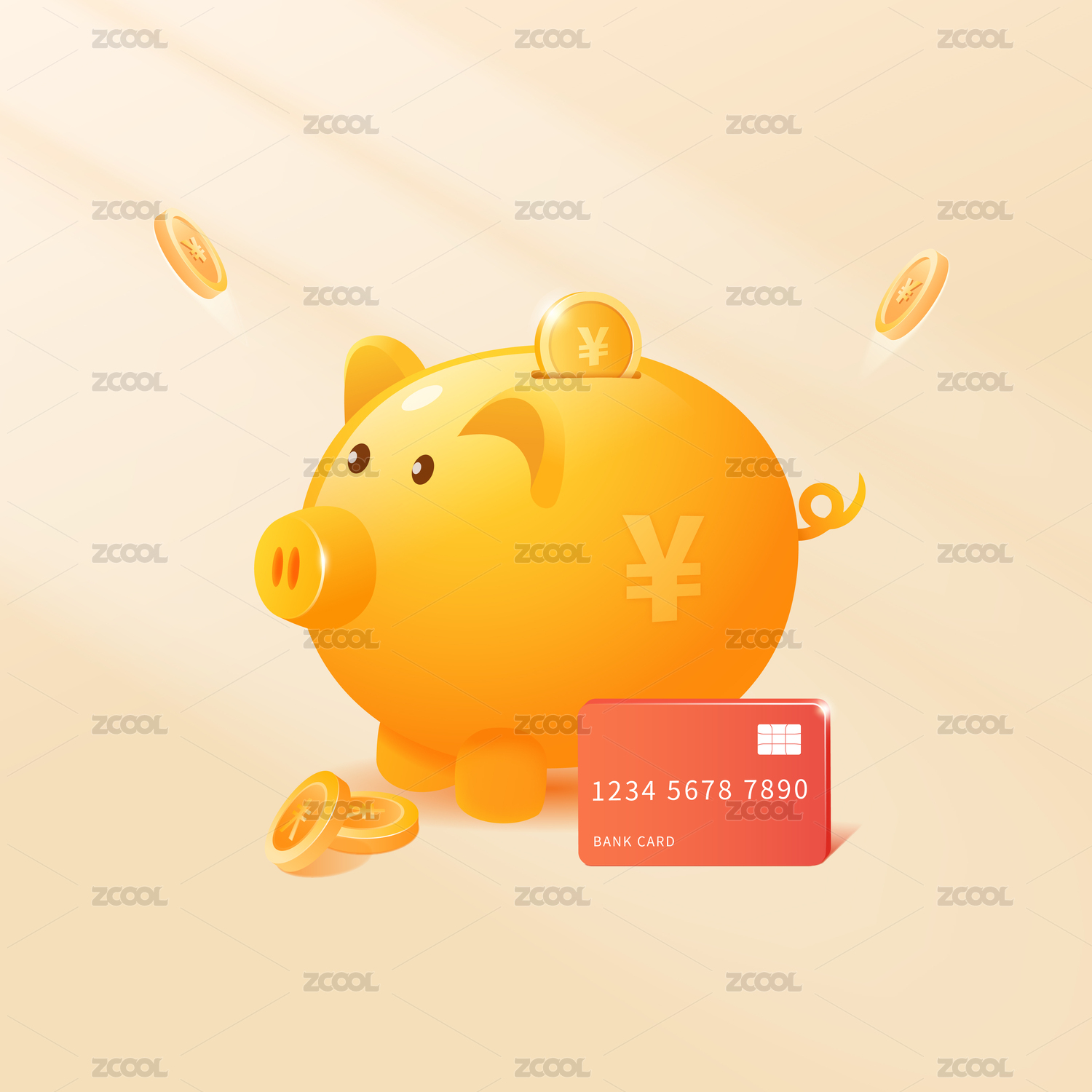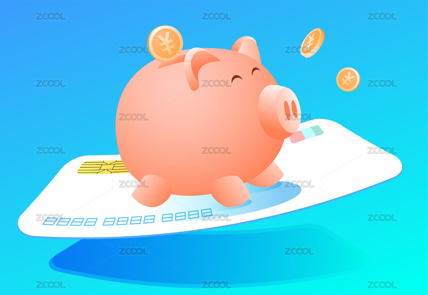 小猪存钱罐在银行卡上奔跑