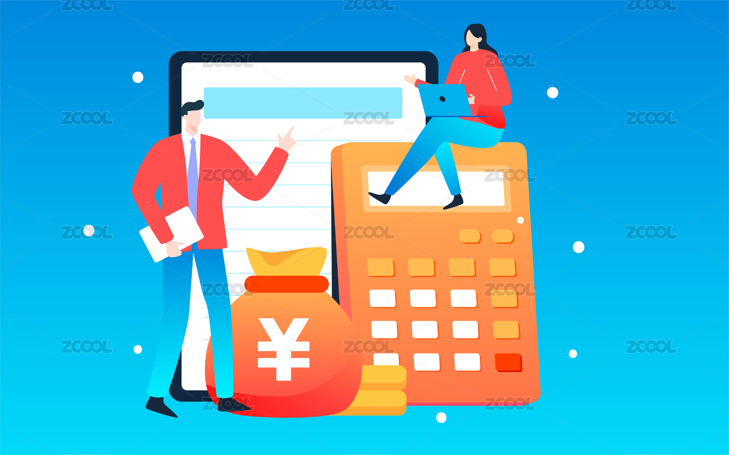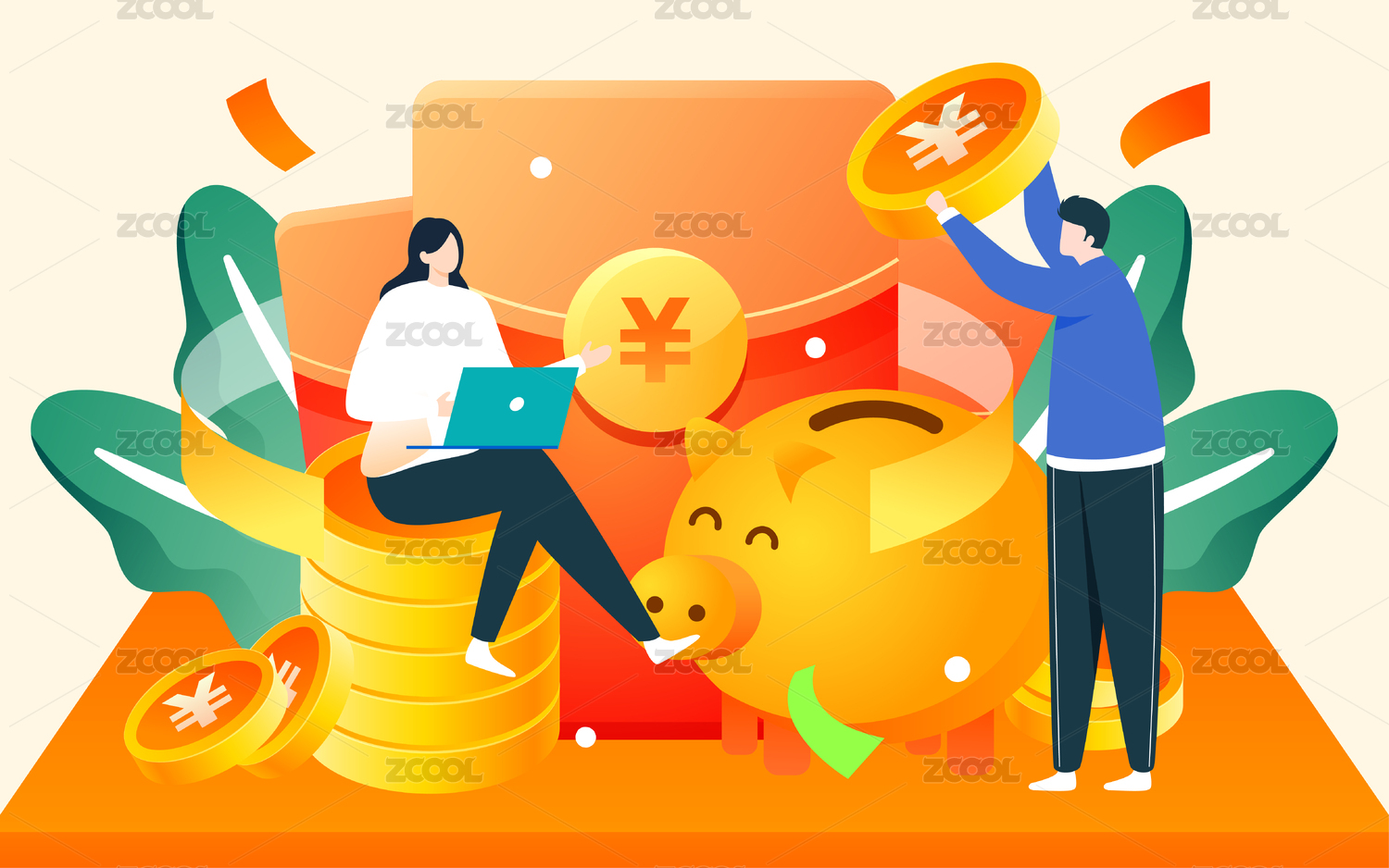 金融理财插画人物存钱罐储蓄商务财富海报