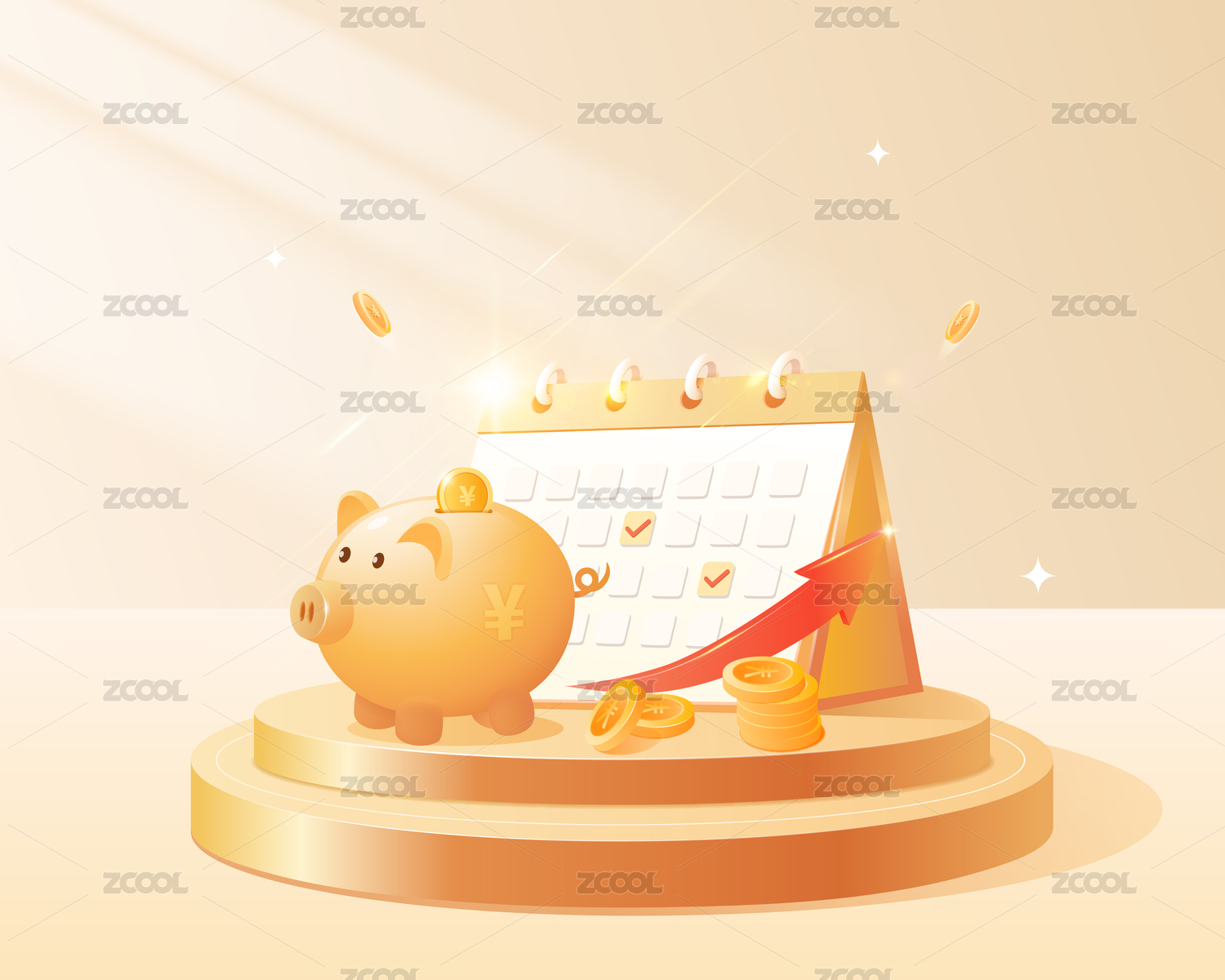 把金币放进存钱罐里和上涨箭头