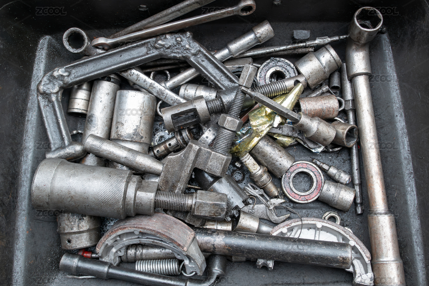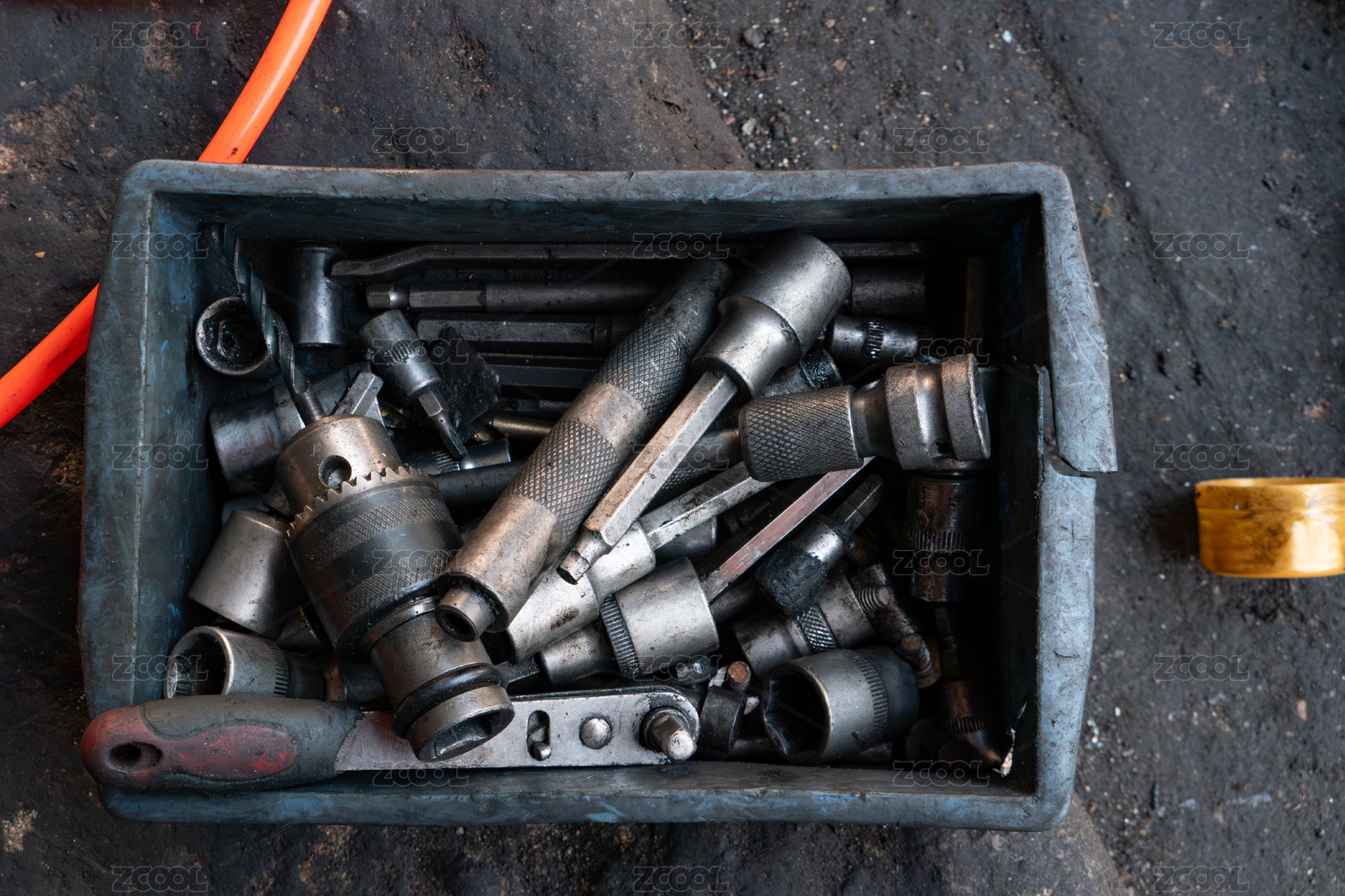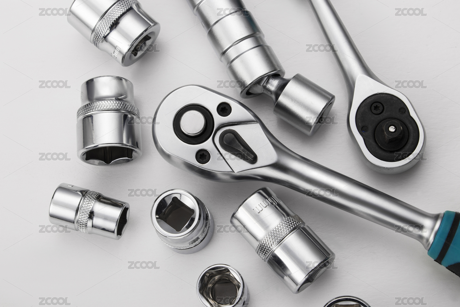 灰色背景中的五金工具扳手和套筒