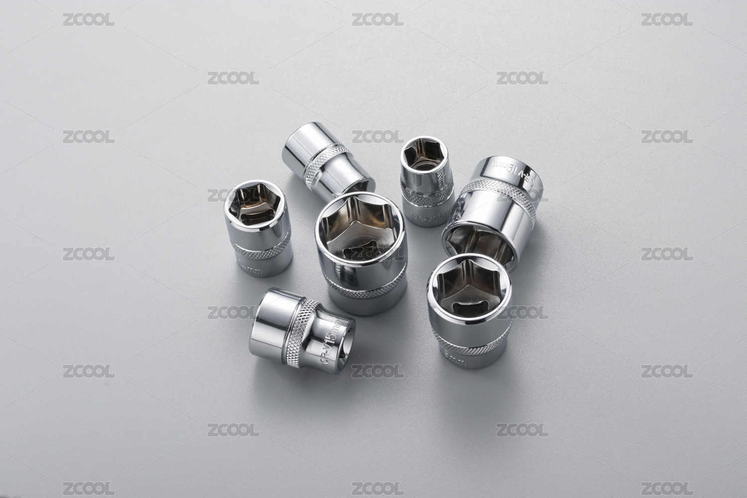 灰色背景中的银色五金工具金属套筒