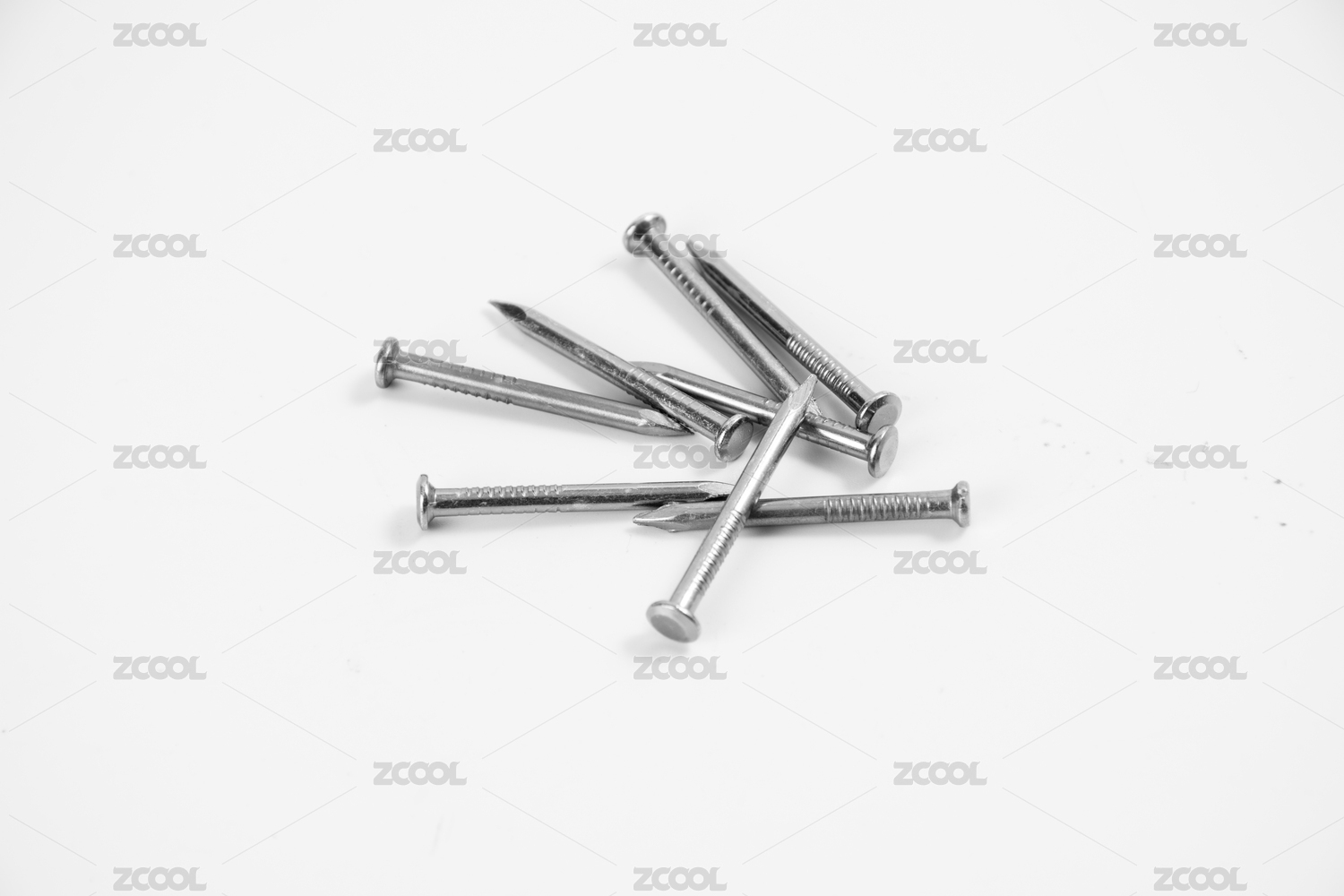 放在白色背景上的五金钉子