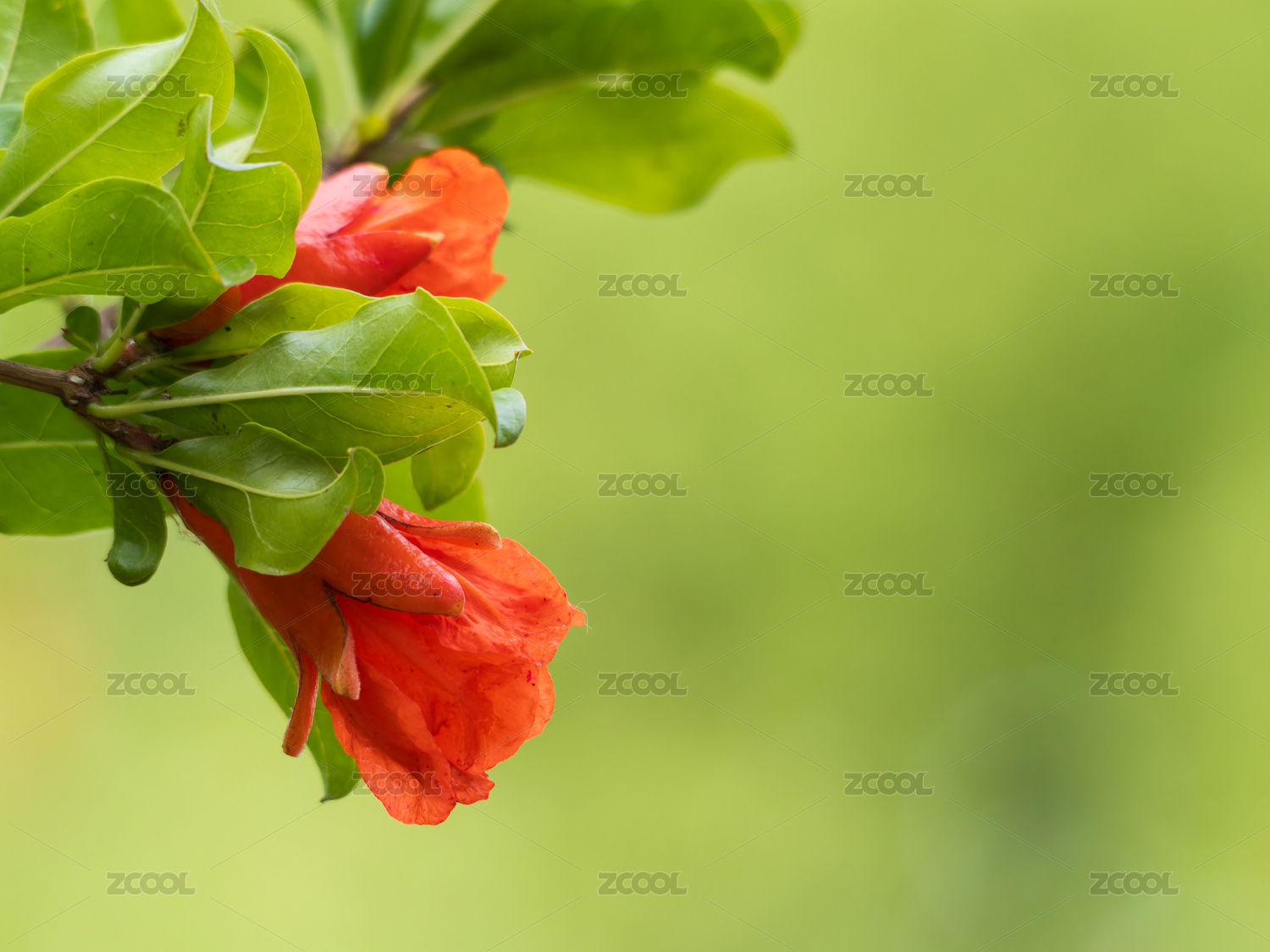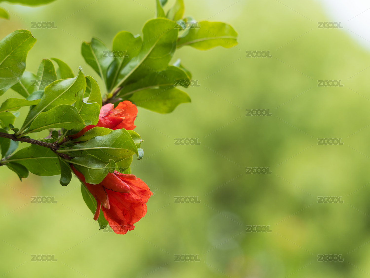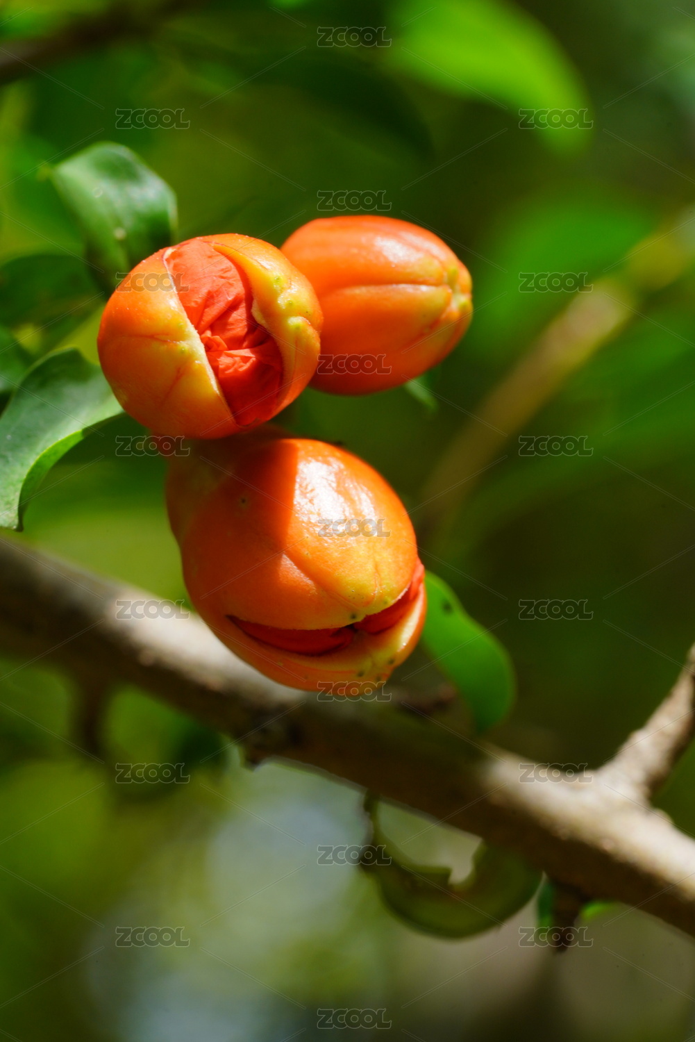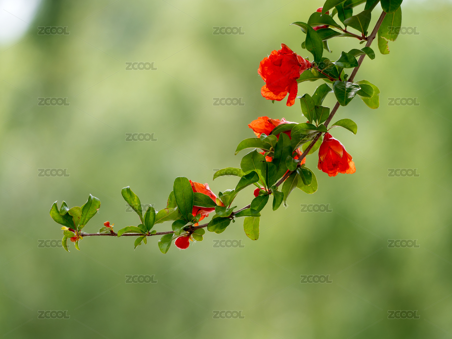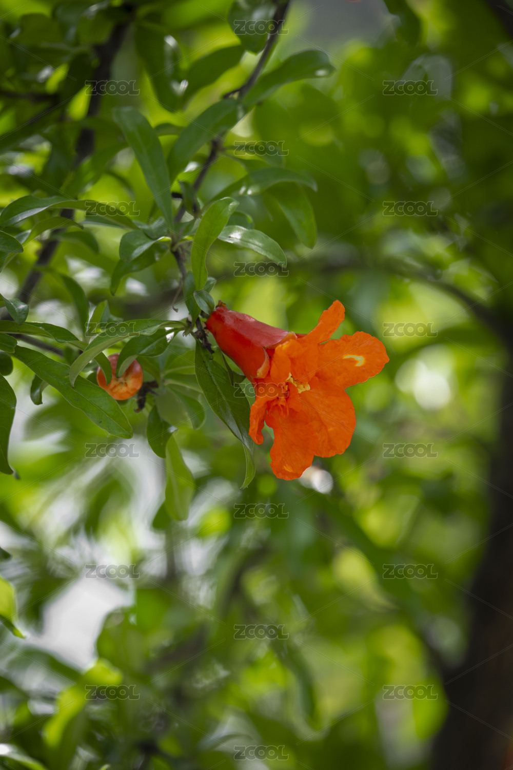 石榴枝上的石榴花
