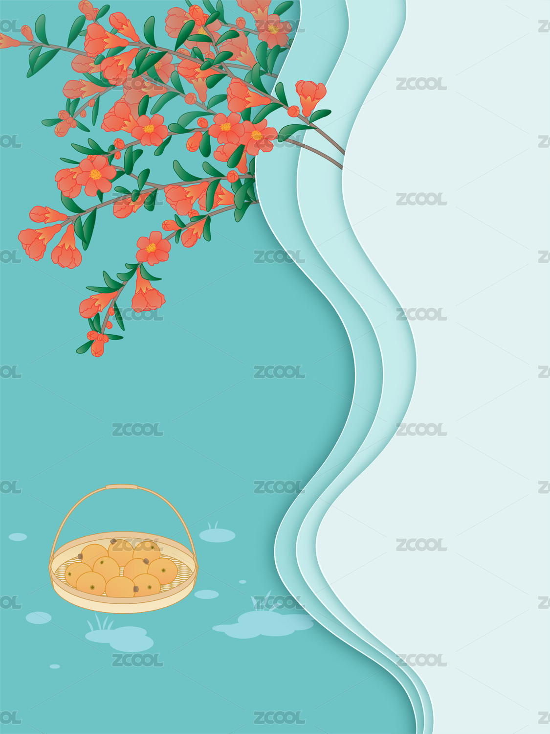 白底上放着石榴花