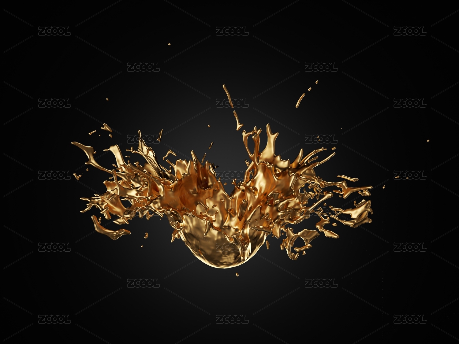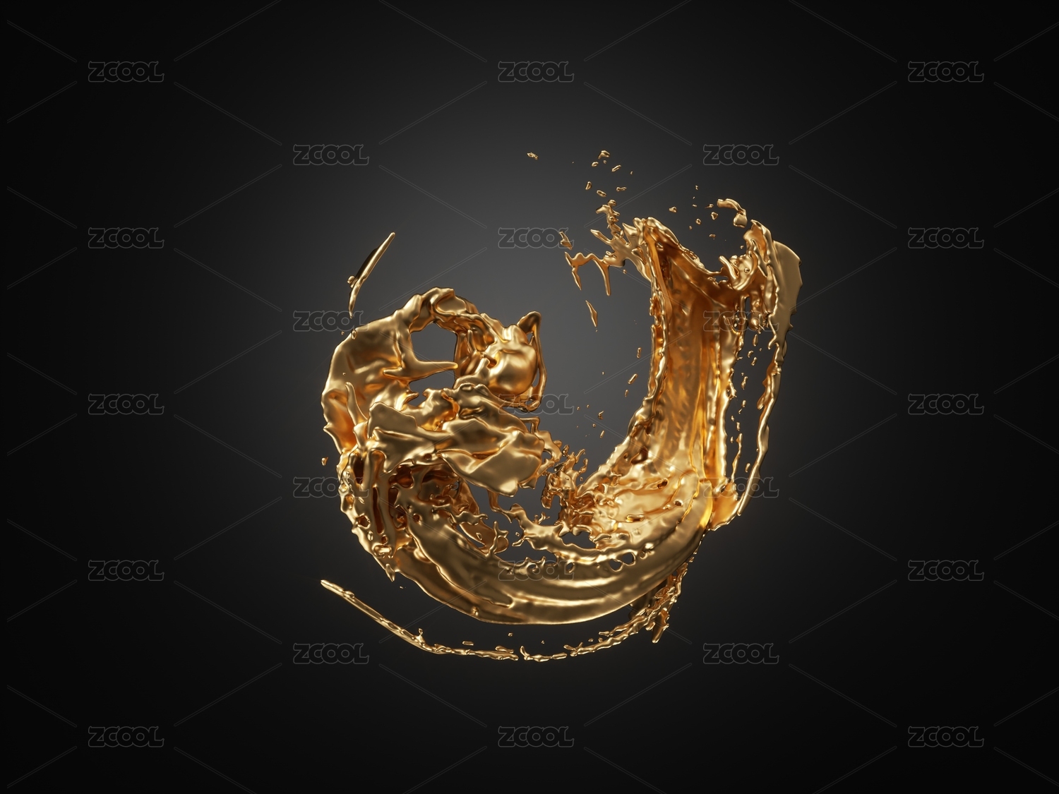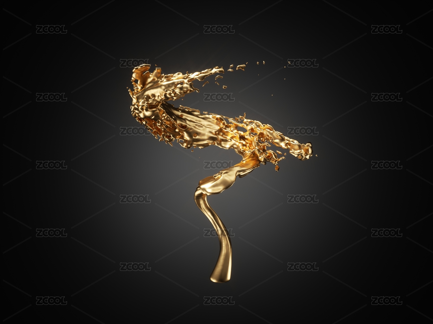 金色的流动液体与水花