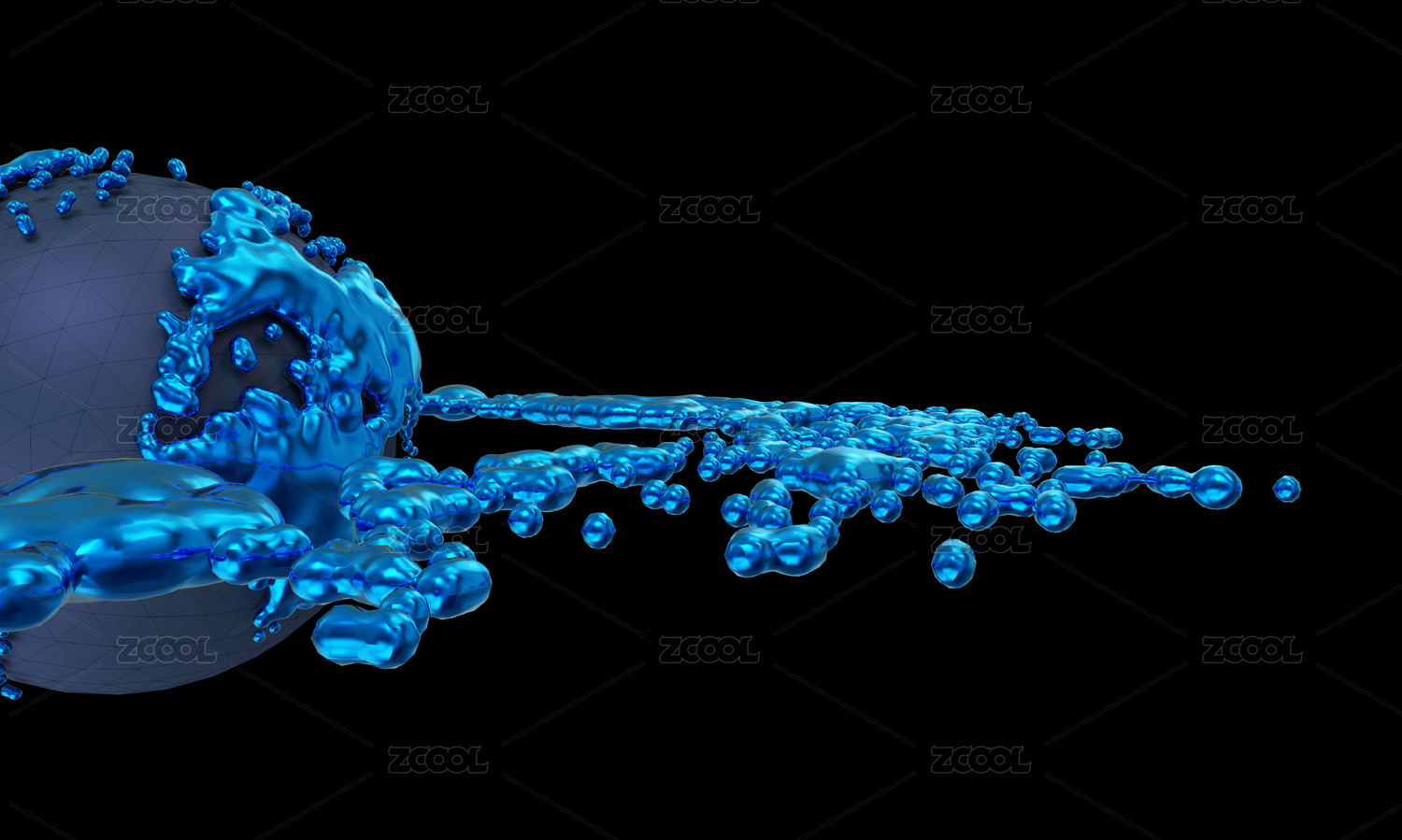蓝色科技液体融合地球,艺术球体